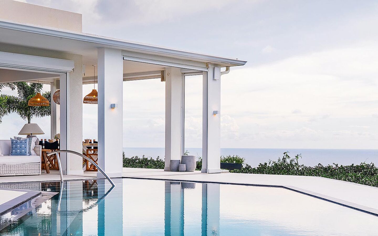 Cool Breeze, St. James, is a luxurious two-story villa with butler service. The upper floor features four exquisite bedrooms and an expansive pool terrace with unparalleled 360-degree panoramic sea views. Fitness enthusiasts will also love the in-house gym.