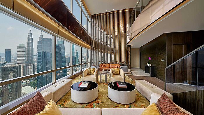 In einem spektalulären Wolkenkratzer untergebrachtes Hotel mit Zimmern und Suiten vom 53. bis 60. Stockwerk