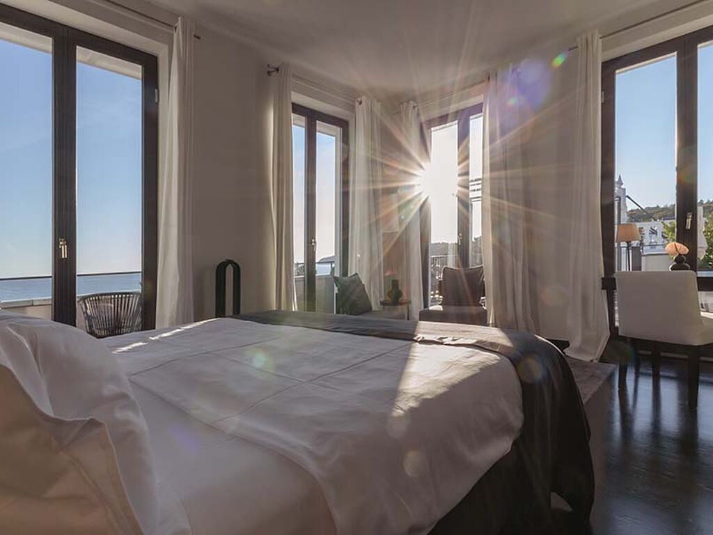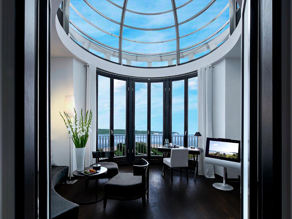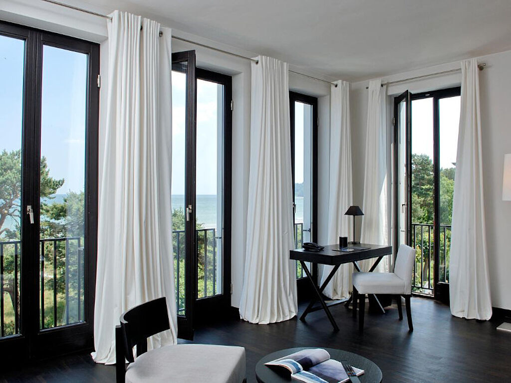 Wer nach dem Dinner noch einmal das Haus verlässt, um sich auf der Binzer Seebrücke die Füße zu vertreten, wird wahrscheinlich die hell-erleuchtete Kuppel auf dem Dach des Cerês bemerken. Darunter ist die schönste Suite des Hauses untergebracht: 60 m² groß, mit mehreren Design- und Hotelpreisen ausgezeichnet, und mit einem Panoramablick hinüber bis zu den Kreidefelsen und hinauf bis in den Ostseehimmel ausgestattet. Die 37 Zimmer mit einem hohen Anteil an großzügigen Suiten des A-ROSA Collection Hotel Ceres am Meer sind elegant möbliert, verfügen über bodentiefe Fenster und Balkone.