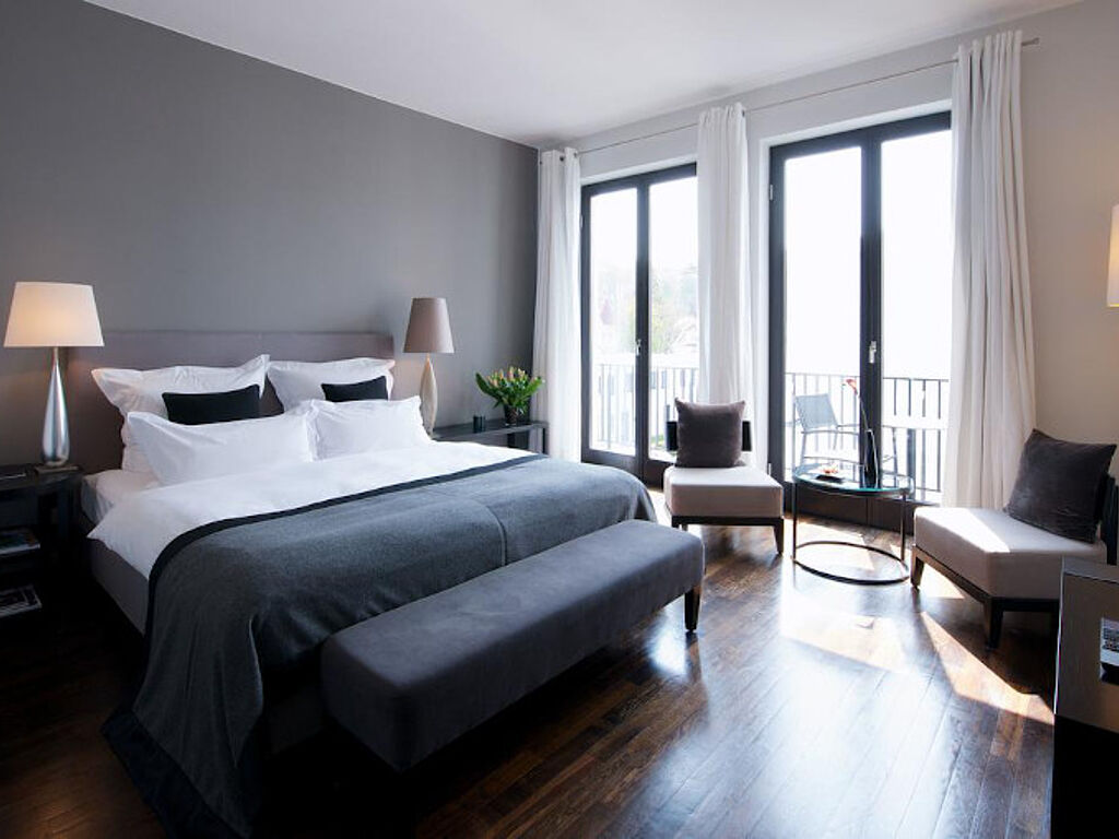 Und der präsentiert sich klar, kühl und reduziert – und gleichzeitig auch sehr elegant: Schwarz, Weiß, Lichtgrau und ein dunkles Anthrazit geben im Haus den Ton, ohne dabei je düster zu wirken. Im Gegenteil, es geht etwas Beruhigendes, Meditatives von der Farbwahl aus – zu bewundern beispielsweise in der loungeartigen Bibliothek mit Blick in den Hofgarten. Herzstück des Hotelbetriebs ist die Wohnhalle im Erdgeschoss, wo Empfang und Bar ineinander übergehen und das Restaurant sowie die Kaminlounge die Gäste zum Verweilen einladen. Im stilvollen Restaurant genießen die Gäste erlesene Speisen, darunter viele regionale Köstlichkeiten. Das gastronomische Konzept soll im Frühling 2024 um die kulinarische Erfahrung von Thomas Martin bereichert werden, der als Küchenchef viele Jahre lang zwei Sterne für das Jacobs Restaurant im Hotel Louis C. Jacob in Hamburg erkocht hat.