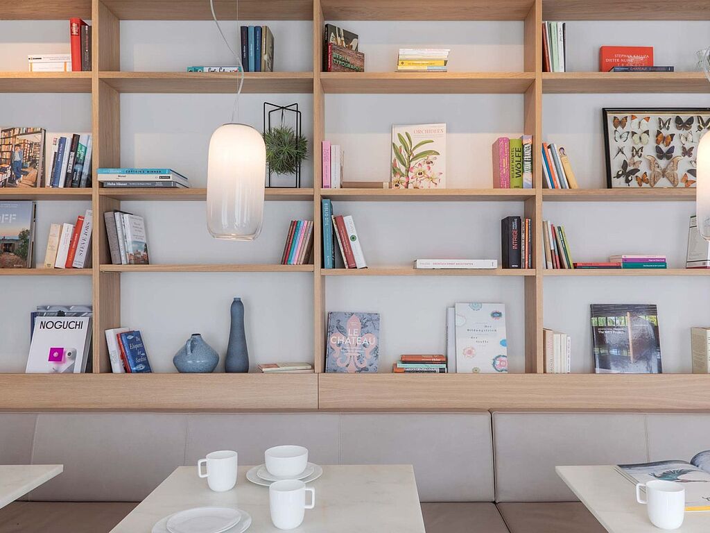 Bodentiefe Fenster und deckenhohe Bücherregale bilden in der Bibliothek den perfekten Ort fürs Frühstück. Ab 14 Uhr lässt es sich hier aber auch wunderbar arbeiten und lesen. Gemeinsam mit ihrem Team interpretiert Küchenchefin Sophia Rudolph im Lovis Restaurant traditionelle Gerichte neu und setzt im Rahmen der Contemporary German Cuisine auf saisonale und regionale Produkte von höchster Qualität.