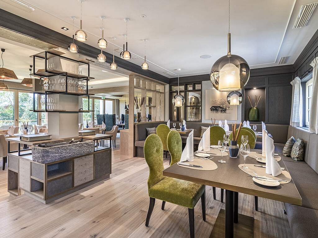 Im Alpenhof Murnau steht zwar kein Hofbräuhaus, aber dafür das Panorama Restaurant Murnauer Reiter. Hochwertige Stoffe und Materialen von Leinen und Leder bis hin zu Holz und Felsstein kombiniert mit Schilf und Gräsern holen das Murnauer Moos im Restaurant am Staffelsee direkt mit an den Tisch. Serviert werden hier bodenständige bayerische Spezialitäten aus besten Produkten. Doch auf gelegentliche internationale Highlights wie Nebraska Beef oder Seeteufel brauchen Feinschmecker nicht zu verzichten. Erneut konnte man für seine Küche eine Auszeichnung bei Fallstaff und Gusto erreichen. Einen Abstecher wert ist der gut sortierte Weinkeller, der mit 1000 Positionen aus allen Teilen Europas aufwartet und zu den zehn besten Weinkarten Deutschlands zählt. Den Weinkeller kann man zwar als Eventlocation nicht nutzen, dafür aber eines unserer 6 Tagungs- und Eventräume, die Platz für 200 Personen bietet und den Blick auf den integrierten Gartenhof freigibt. Sehr attraktive Plätze sind auch die großzügige Sonnenterrasse, der Wintergarten, die Zirbelstube und das Reiterzimmer.