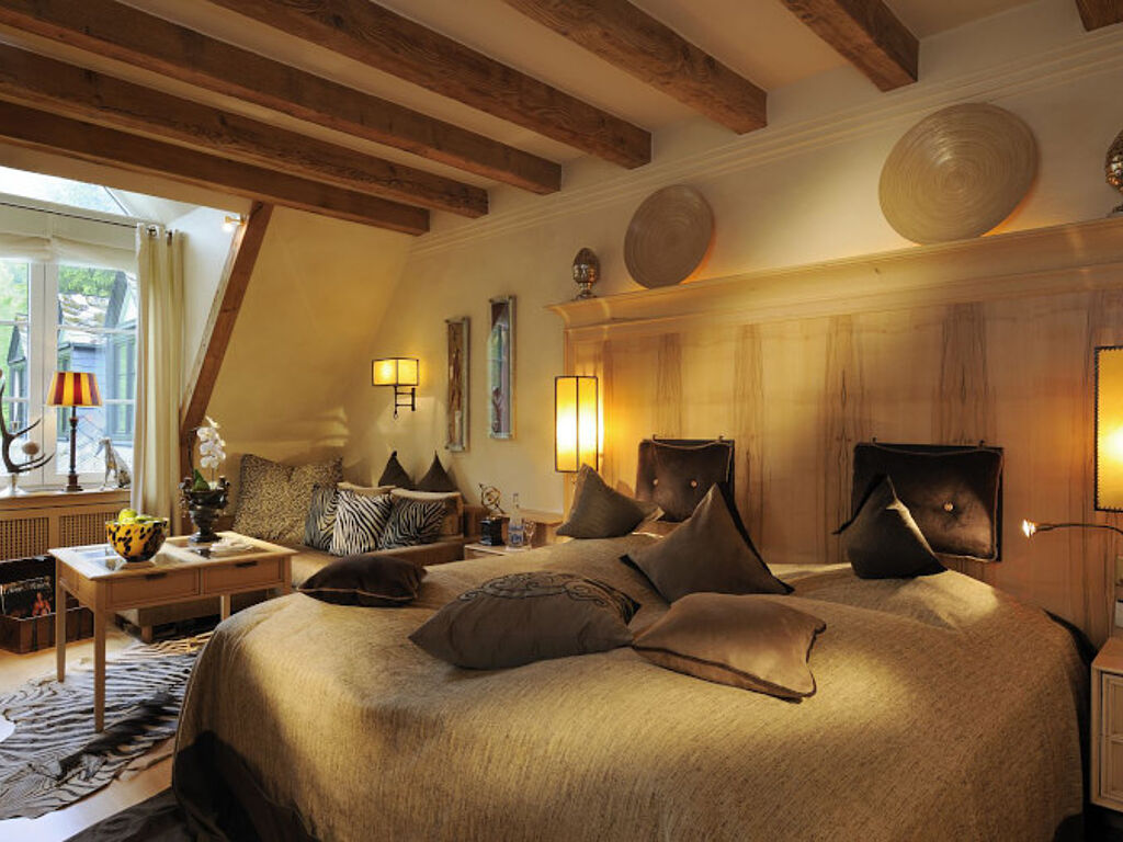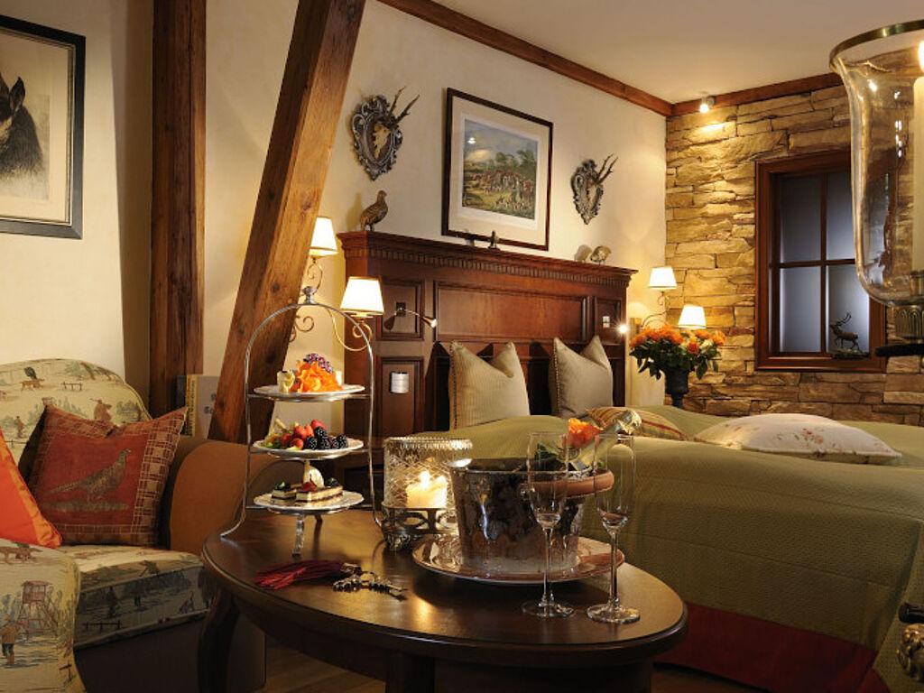 Erlesen Stoffe, Holzvertäfelungen, gediehene Möbel, kostbare Böden – das sind die Grundausstattungen für die Suiten und Zimmer, die sich im edlen Landhaustil präsentieren. Das Apartment African-Style sticht mit seinen zebragemusterten Kissen und dem Hauch Kolonialstil deutlich heraus. Attraktiv ist auch das Maisonette-Apartment, das neben dem Schlafzimmer einen Salon bietet.