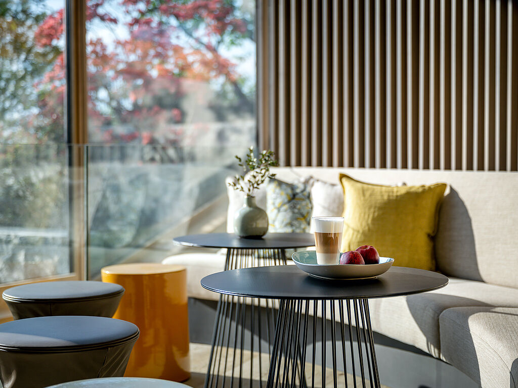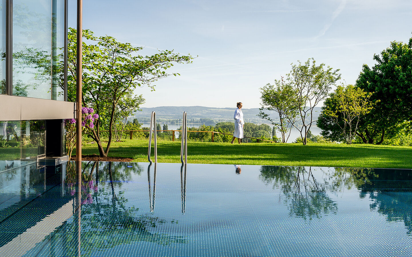 Im 1.000 m² großen Wellnessbereich mit Infinity Pool aus verbundenem Innen- und Außenbecken, Saunen, Kneippbecken sowie Ruheinseln und Behandlungsräumen kommen Erholungssuchende garantiert auf ihre Kosten. Im weitläufigen Inselgarten kann man außerdem geruhsam die Seele baumeln lassen und den 270-Grad-Panoramablick auf die Wasserweite genießen.