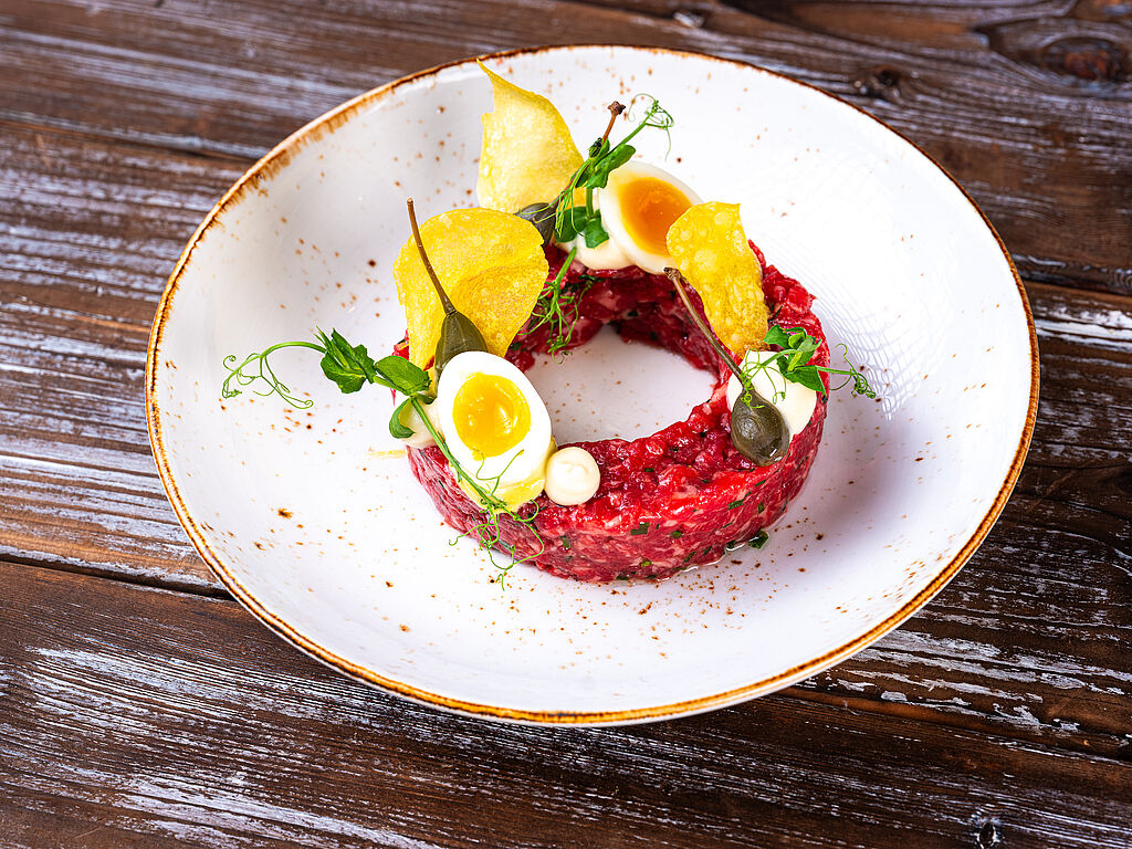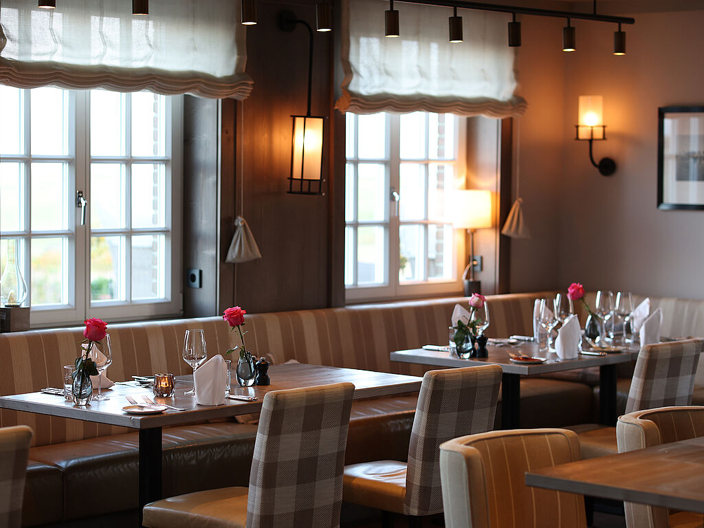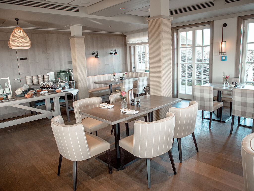 Die Köstlichkeiten aus der Küche des hauseigenen Restaurants stammen aus der Region. Viele Gerichte werden aus Wildkräutern oder aus Meerestieren zubereitet. Da am Wattenmeer viele Tage windstiller verlaufen, ist es möglich zum Beispiel sein Nordseekrabben-Süppchen auf einer Terrasse mit Blick auf die Dünen und das Wattenmeer zu genießen. Und unbedingt Sylter Royal Austern versuchen.