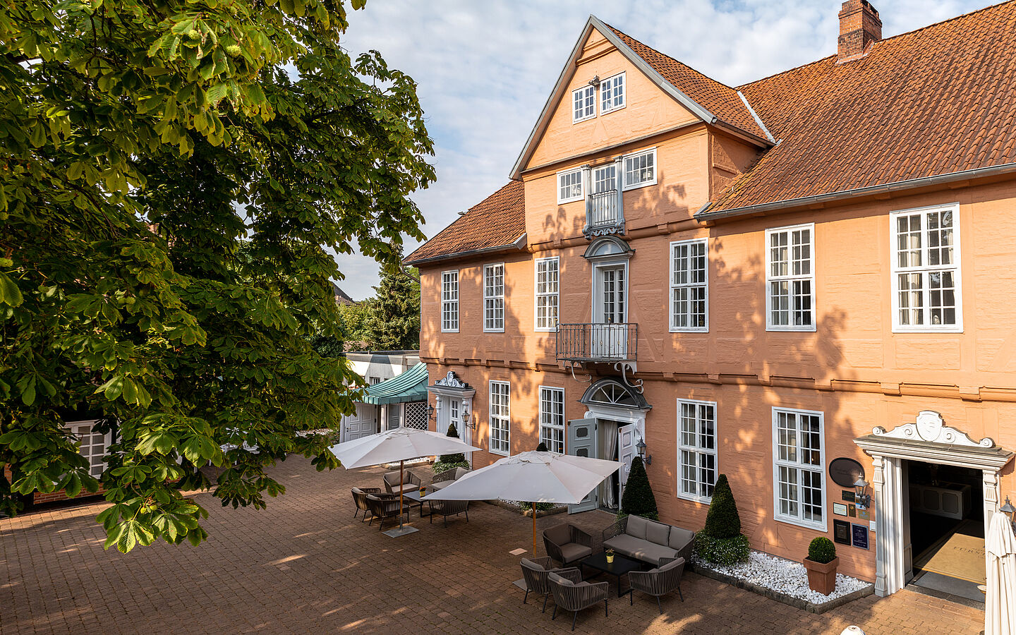 Das Anwesen zeigt das typische Bild der schmucken Landhäuser jener Zeit – in Bilderbuch-Lage am Rand der Lüneburger Heide. So gehört das Adelspalais mit 62 stilvollen Zimmern und Suiten zu den schönsten Hotels in Norddeutschland.