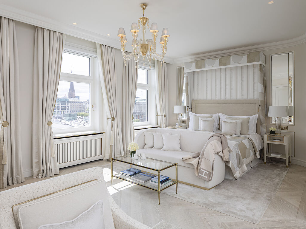 Bei aller Historie und Tradition präsentiert sich das Hotel Vier Jahreszeiten, das 2022 sein 125. Jubiläum gefeiert hat, als auffallend zeitgemäß geführtes Grand Hotel. Über die vergangenen zehn Jahre wurde das Haus im großen Stile renoviert. Alle 156 Zimmer und Suiten erstrahlen in frischem Glanz. Außergewöhnliche Materialien werden dabei in sechs verschiedenen Farbkonzepten effektvoll in Szene gesetzt - dezente Akzente in Gold, Kiwi, Taubenblau, Kaminrot, Brombeer und Flieder laden zum Verweilen ein. Der Stil der Einrichtung ist frisch und unkonventionell, bleibt dabei jedoch klassisch und zeitlos elegant. Auch der Vier Jahreszeiten SPA und verschiedene Restaurants wurden komplett umgestaltet, zusätzliche Eventlocations hinter den Kulissen des Hotels bilden ein einzigartiges Setting für außergewöhnliche Events und damit ist es längst nicht getan. Ab Frühjahr 2021 heißt das Team um General Manager Ingo C. Peters die Gäste in einer vollständig erneuerten Empfangshalle willkommen. Eine einzigartige Symbiose aus Creme-, Gold- und Aqua-Tönen schafft ein exklusives Ambiente, die Einrichtung wurde größtenteils eigens für das Haus angefertigt von hochkarätigen Partnern wie den Bielefelder Werkstätten, Jan Kath oder Badari. Darüber hinaus entstand im ehrwürdigen Weinkeller eine einmalige und exklusive Erlebniswelt für Weinliebhaber.