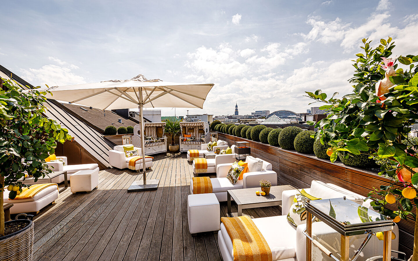 Ein Highlight ist die an den Spa angeschlossene großzügige Dachterrasse mit weißen Lounges und dezent-eleganten Dekorationen, wunderschönen Strandkörben und einer Champagnerbar.