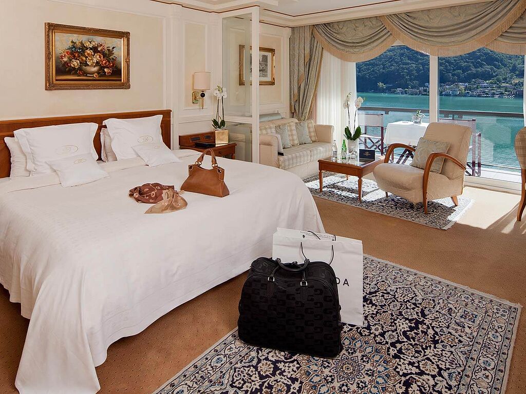 Dass dem Swiss Diamond Hotel Lugano das Wohlbefinden seiner Gäste am Herzen liegt, bemerkt man sobald man eines der 84 Räumlichkeiten betritt: elegant möbliert, versprühen sie einen Hauch von Märchen und Magie. Jedes Detail ist mit Sorgfalt gestaltet – angefangen bei den Persischen Teppich über die Venezianischen Kristalle bis hin zu den raffinierten Gemälden. Als liebevolles Detail kann man sich gleich bei der Ankunft auf ein besonderes Geschmackserlebnis beim Verkosten der handgemachten Willkommensschokolade freuen. Und doch gilt es auch hier ein Dilemma zu bewältigen, denn man muss sich schließlich entscheiden: Zwischen einem Zimmer mit Seeblick, mit Panoramaaussicht auf die Alpen oder mit Blick auf den harmonisch gestalteten Garten – eine süße Qual. Es darf ruhig ein wenig luxuriöser sein? Dann empfiehlt sich die geräumige, elegante und komfortable Penthouse Suite, die sowohl die Royal als auch eine Deluxe Suite umfasst und sich über zwei Etagen erstreckt. Mit ihren 450 m² Wohnfläche zählt sie zu den größten und elegantesten Refugien im Tessin.