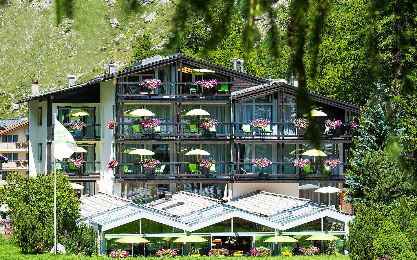 1. Platz: Erholungsparadies für Familien: Das an einem Lärchenwald, direkt bei den Bergbahnen von Saas-Almagell gelegene 4-Sterne-Superior-Hotel wird nicht ohne Grund “The little paradise” genannt.