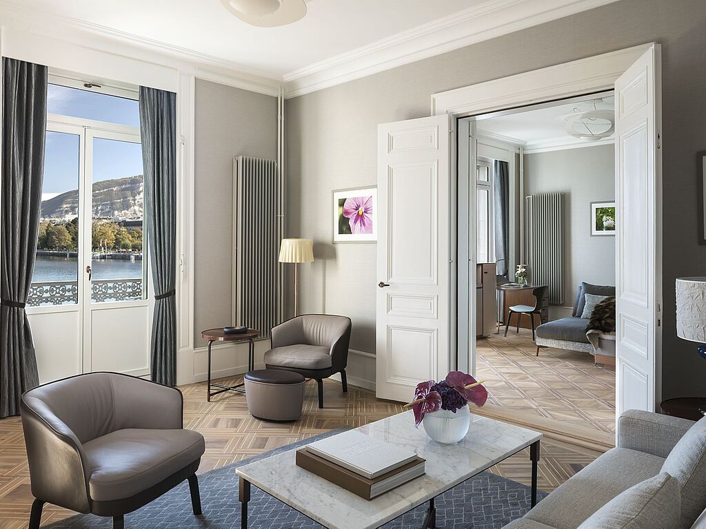 Die insgesamt 75 kürzlich renovierten Zimmer und Suiten machen dem guten Ruf des Hauses jede Ehre. Allen Räumlichkeiten gemeinsam ist deren gekonnte Design-Symbiose aus historischer Eleganz und modernstem Wohnkomfort. Raffiniert gemusterte Parkettböden, hohe Flügeltüren und verspielte Balkonbrüstungen zeugen von der langen Tradition des Hauses, während keckes Dekor und stylisches Interieur für die richtige Note an modisch-urbaner Finesse sorgen. Schon morgens vor dem Frühstück können Sie hier entspannt Ihren Espresso schlürfen und direkt vom Zimmer aus den Blick über den Mont Blanc und den Genfer See genießen – so kann der Tag beginnen!