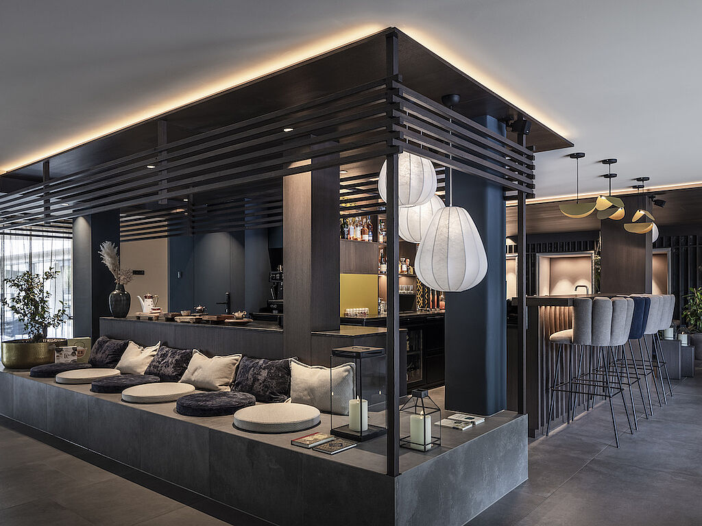 Highlight ist der weitläufige soulful Spa-Bereich mit Infinity-Pool, Saunen, Ruheräumen und Feuerstellen auf Gartenebene und der Rooftop-Etage. Die eigens entwickelte Spa-Linie