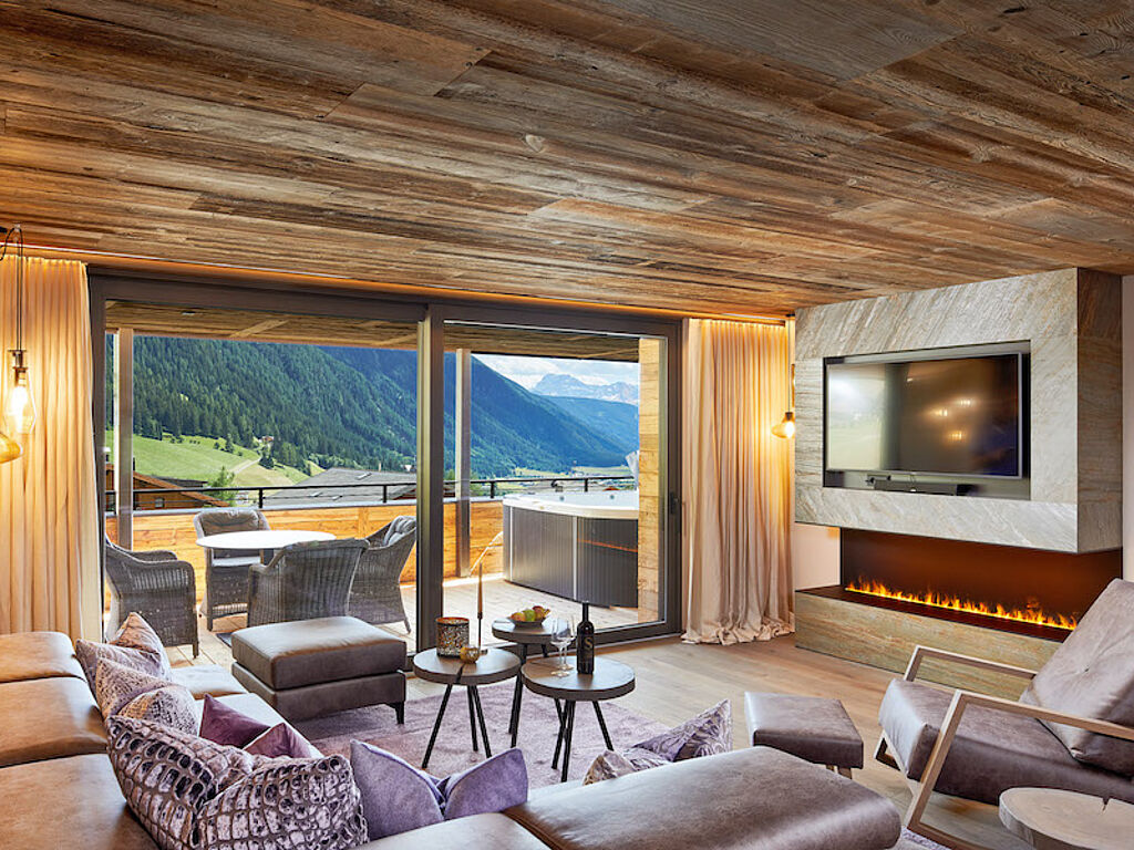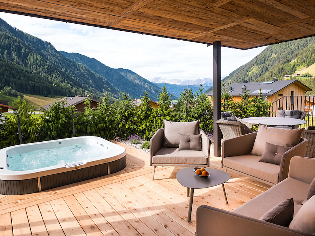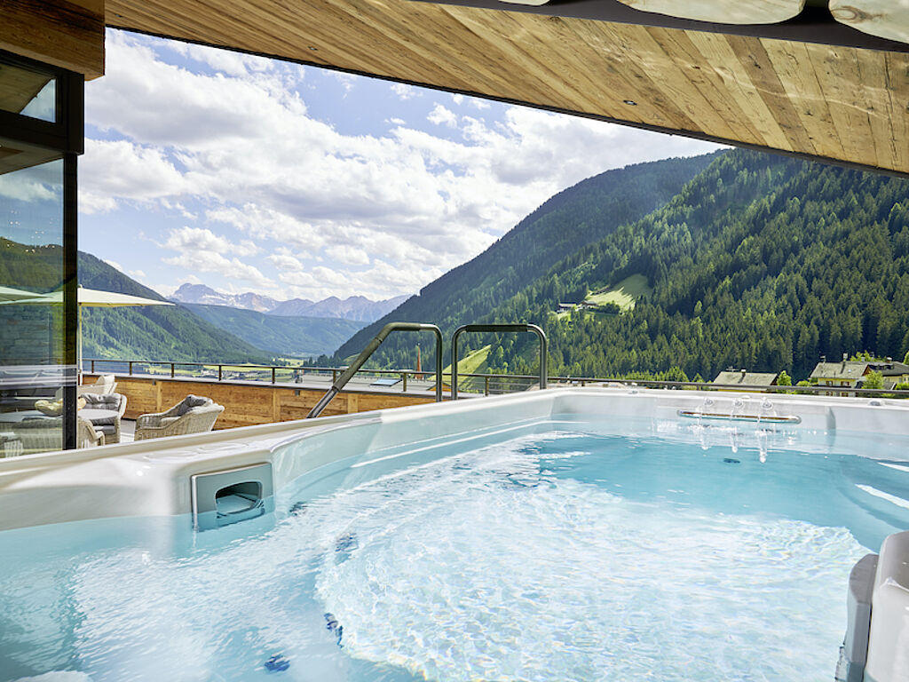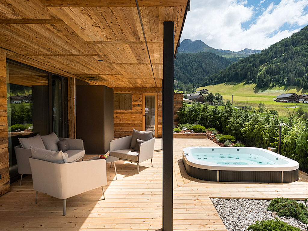 Auf der eigenen Outdoor-Loggia oder der Terrasse mit Blick auf die herrliche Bergwelt lassen sich in der finnischen Zirbensauna, im Hot-Whirlpool oder im Schwimm-SPA auf Design-Relaxliegen alle Alltagssorgen vergessen!
