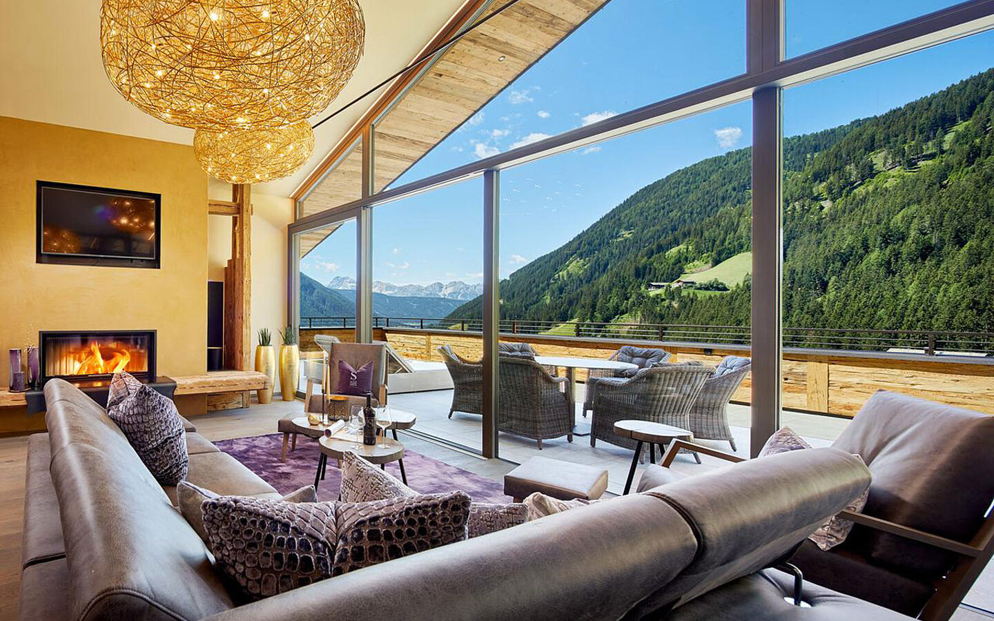 3. Platz: In der idyllischen Lage des Gsieser Tals, umgeben vom spektakulären Bergpanorama der Dolomiten, finden sich auf 1.400 Metern Höhe herrliche Natur, uriger Almhütten-Charme und luxuriöser Komfort – und all das vereint in der Chalet Lodge Salena in St. Magdalena.