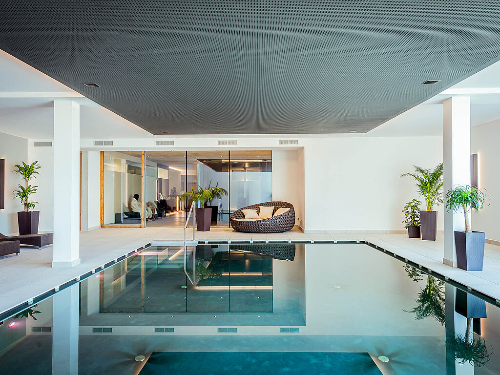 In der stilvollen Spa-Landschaft der Villa Waldkönigin wird Wohlbefinden großgeschrieben. Der Indoorpool lädt zum schwerelosen Treiben im warmen Wasser ein, während in der finnischen Sauna, Biosauna und im Dampfbad wohltuende Wärme den Alltag vergessen lässt. Für tiefe Entspannung sorgen zudem kuschelige Liegen und duftende Heubetten in der Ruhezone. Ergänzt wird das Wellnessangebot durch eine exklusive Auswahl an Spa-Behandlungen: von wohltuenden Massagen über vitalisierende Peelings und Bäder bis hin zu Maniküre und Pediküre – das professionelle Team versteht es, Gäste rundum zu verwöhnen.