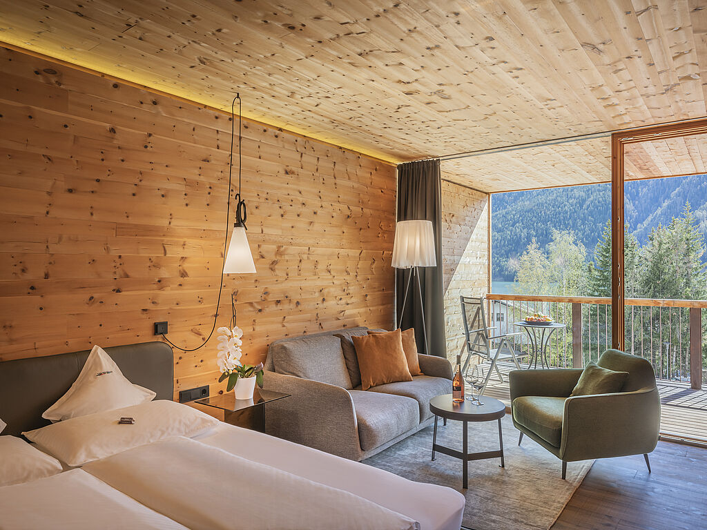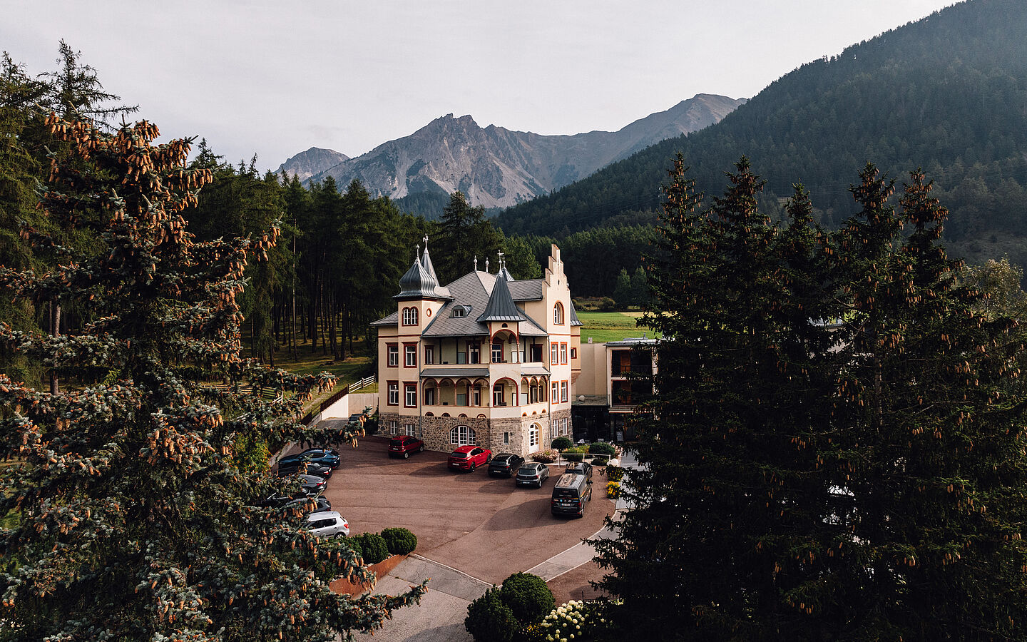 Wie ein kleines Märchenschloss thront die Villa Waldkönigin inmitten duftender Wälder und am Ufer eines idyllischen Alpensees. Gelegen in St. Valentin auf der Haide, einem charmanten Ort im Südtiroler Vinschgau auf rund 1.470 Metern Seehöhe, bietet dieses Boutiquehotel die perfekte Kulisse, um neue Kraft in der Natur zu schöpfen.