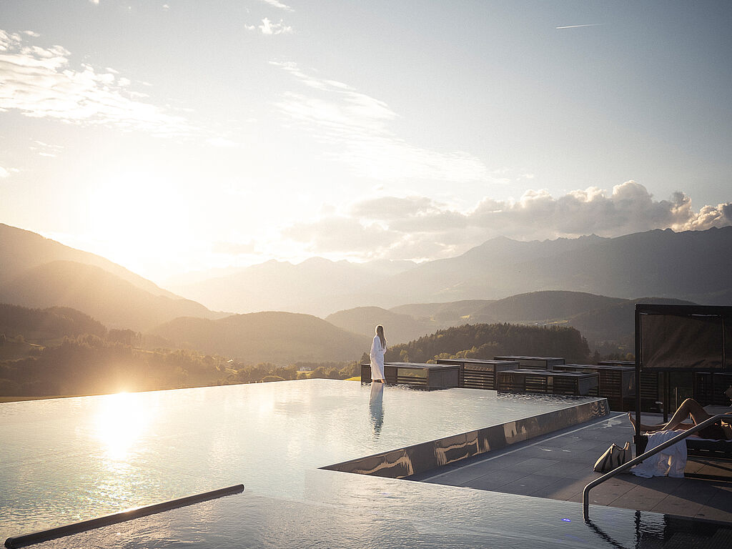 Seit Herbst 2021 wartet das 5 Sterne-Haus mit einige Neuerungen auf. Auf der Dachterrasse wurde ein neues Adult-only-Wohlfühlreich mit beheiztem Infinity-Pool (18 m) und ein romantischem Whirlpool geschaffen – 360°-Panoramablick inklusive.