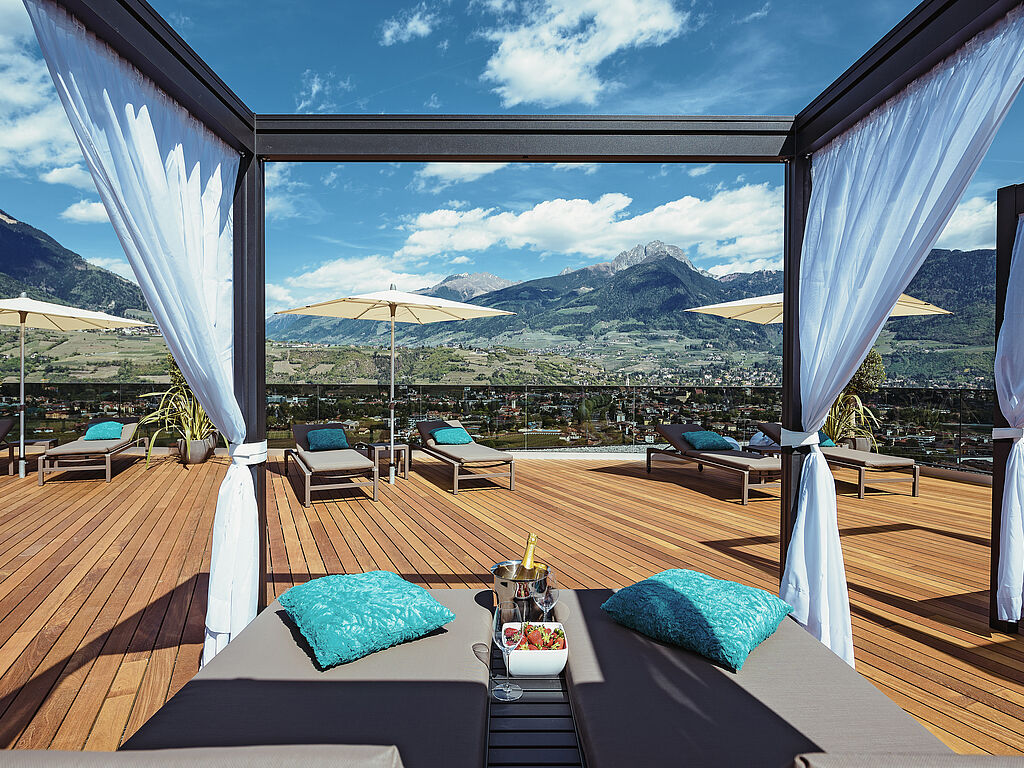 Luxus, aber ganz entspannt. Das La Maiena Meran Resort liegt in Marling, über den Dächern von Meran und nur wenige Minuten von der Stadt entfernt. Nach dem großen Umbau in 2024 präsentiert sich das familiengeführte Hotel noch großzügiger, moderner und komfortabler.