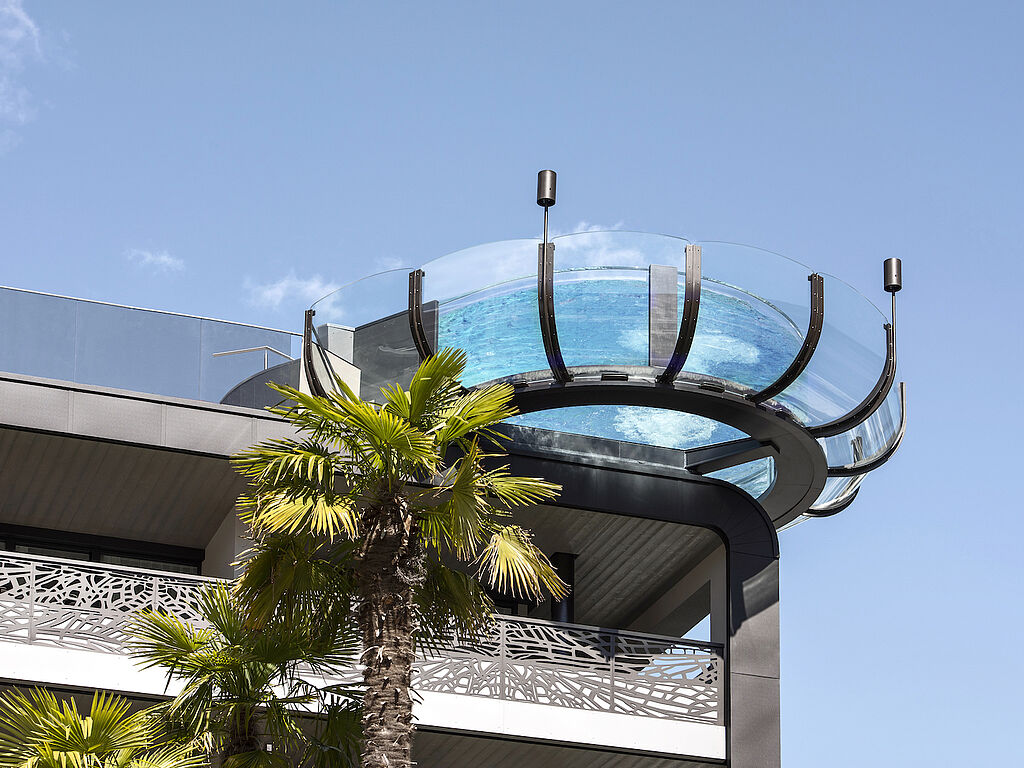 Der chice „Rooftop Spa“ (adults only) am Dach des Quellenhof Resorts. Absolutes Highlight und neuer Instagram-Hotspot ist mit Sicherheit der spacige Infinity-Pool komplett aus Glas (ganzjährig 32°) mit Blick auf die Passeirer Bergwelt. Eine Finnische Panoramasauna, neue, großzügige Ruhebereiche innen und außen mit herrlich bequemen Day Beds runden das Wellness-Erlebnis „deluxe“ ab.