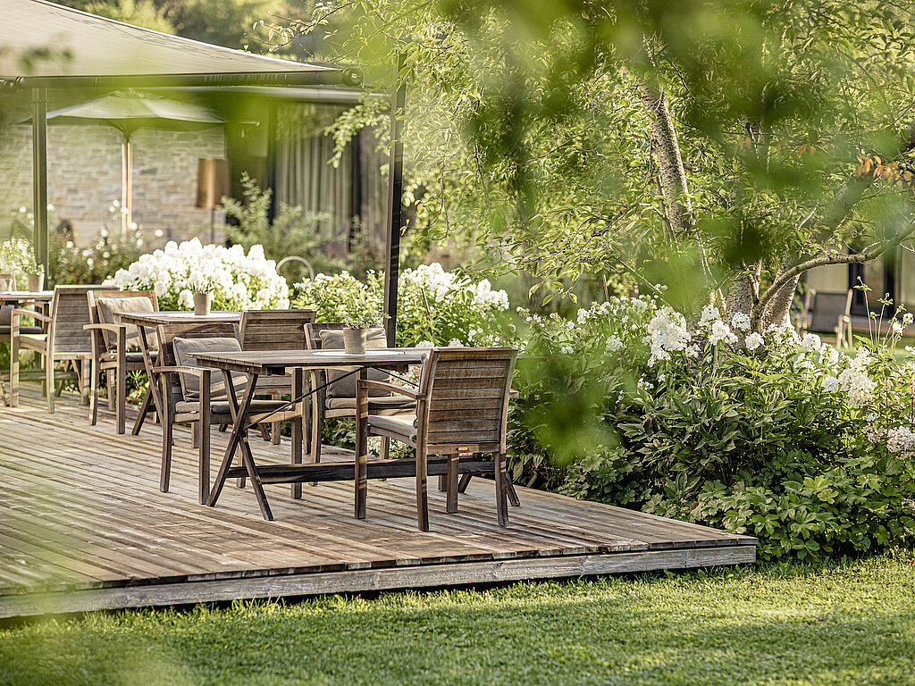 Die Kulinarik spielt im WIESERGUT eine zentrale Rolle. So kommen überwiegend Produkte aus der familiengeführten Landwirtschaft und der Region zum Einsatz. Sepp Kröll legt viel Wert auf Qualität und saisonale Zutaten aus dem heimischen Gemüse-, Obst- und Kräutergarten. Speck, Fleisch vom Pinzgauer Rind und Milchkalb sowie Milch und Eier stammen beispielsweise aus der eigenen Erzeugung. Im Sommer bedient sich die Küche zum Teil aus den angrenzenden Gärten und Gäste schlemmen Wildkräutersalate, Kuchen mit Obst aus eigenem Anbau und hausgemachte Marmeladen. Sowohl das Restaurant als auch die großzügige Terrasse im Innenhof bieten viel Platz pro Gast. Alles, was der Garten nicht aufbringt, kommt von regionalen Gemüselieferanten. „Back to the roots" ist die Philosophie in der Küche unter der Leitung von Küchenchef Andreas Hollin. So werden traditionelle, qualitativ hochwertige Gerichte im À-la-carte-Menü neu interpretiert und sorgen immer wieder für ein geschmackliches Erlebnis.