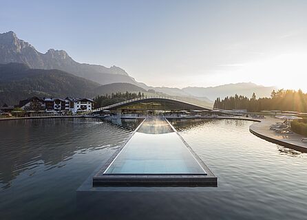 The hotel's own LE FEEL wellness area is an oasis of calm - exclusively for guests aged 16 and over. It includes various saunas, a steam bath, a stylish relaxation room and a fitness area with modern equipment. The highlight: the infinity pool, which flows seamlessly from the indoor to the outdoor area and offers an unobstructed view of the impressive mountain world.