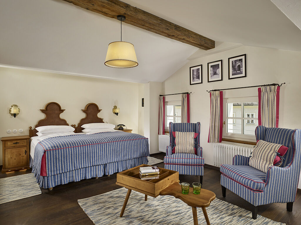 Das Hotel, Teil der Marke „The Luxury Collection“ die eine exklusive Auswahl der meistgefragten Destinationen weltweit vereint, besticht durch seine familiäre Atmosphäre und sein typisches Ambiente im luxuriösen Salzburger Landhausstil. Die 70 Gästezimmer und Suiten bieten eine authentische Einrichtung im elegant-traditionellen Salzburger Stil. Die antiken Originalstücke , die handgefertigten, prächtigen und zugleich unaufdringlichen Möbel erinnern an 600 Jahre Hotelgeschichte. Persönlicher Service mit viel Liebe zum Detail gepaart mit dem einzigartigen Charm des Hauses garantieren einen einzigartigen Aufenthalt.