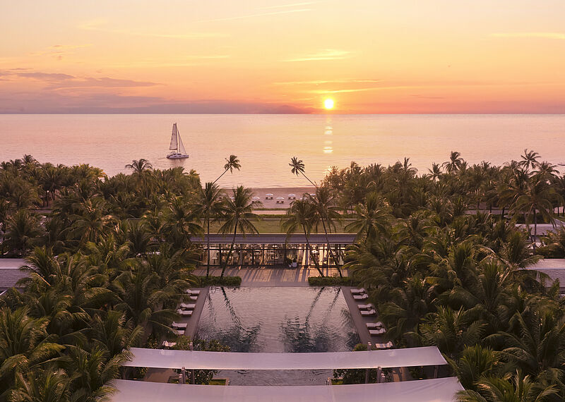 Welche Jahreszeit ist die beste? Das kommt drauf an, würde ich mal sagen. Denn der zentrale und der südliche Teil mit den genannten Luxusresorts liegen im Einfluss von unterschiedlichen Monsunen. Es kann manchmal tagelang regnen, was nicht selten zu Überschwemmungen führt. Zudem fegen hin und wieder Taifune übers Land. Auf Zentralvietnam, wo Danang, Hoi An, Quy Nhon und Cam Ranh liegen, trifft der Nordostmonsun zwischen Anfang Oktober und Ende Februar. Nicht die beste Zeit also für Reisende, die beispielsweise Golf spielen wollen. Im Süden wütet der Südwestmonsun zwischen Mai und September. Dann kann es nicht nur im Mekong-Delta, sondern auch auf Phu Quoc ungemütlich werden. Kleiner Trost: Der tropische Regen ist warm. Und wer sich in dieser Zeit ganz der Wellness widmen möchte, findet in allen Luxusresorts hervorragende Spas.