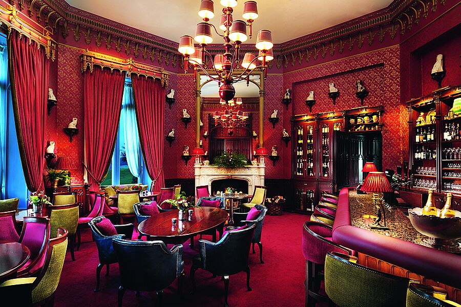 Dromoland Castle war einst der Stammsitz des O’Brien-Clans, einer Familie, deren Abstammung bis zu einem der letzten Hochkönige Irlands zurückreicht. Heute gehört der irische Märchenpalast zu den schönsten Schosshotels der Insel und beherbergt eine der größten Gemäldegalerien Irlands. Bereits bei der Anfahrt beeindruckt die majestätische Fassade. Türme und Zinnen ragen hoch hinauf in den blauen Himmel. Sobald man die Treppe zum Eingang emporgestiegen ist, scheint man in einer anderen Welt angekommen zu sein. Ritterrüstungen, Ölgemälde, Kronleuchter und riesige Blumenarrangements zieren die Lobby. Die Rezeption gleicht einer Theaterkulisse. Hier kann man wahrhaft königlich übernachten. Die großzügig dimensionierten Zimmer und Suiten haben bequeme Himmelbetten, Teppichböden im Karo-Design und Marmorbäder. Der Drawing Room ist ein Traum in Rubinrot. Unser Lieblingsplatz ist die romantische „Gallery“ mit edlen Antiquitäten, flackerndem Kamin, Jagdtrophäen und Ahnenporträts an den Wänden. Hier kann man Stunden verbringen: bei einem Kaffee seine Morgenzeitung lesen, mittags einen köstlichen Briochetoast mit Bacon und Avocado bestellen oder später seinen Aperitif nehmen. Wenn das Wetter mitspielt, rudert man am Nachmittag mit einem Champagner-Picknick auf den See hinaus. Highlight am Abend ist ein elegantes Dinner mit Harfenmusik im prachtvollen „Earl of Thomond“-Restaurant. Es bietet die perfekte Kulisse für die preisgekrönte Küche von David McCann. Dazu kommt ein exzellenter Old-World Service, der kaum zu toppen ist. Wer es weniger formell mag, wählt das legere „Fig Tree“-Restaurant im Golfclub. Nach dem Frühstück erlebe ich einen Einblick in die Faszination der Falknerei. Mit Falkner Dave und Falke Funky an meiner Seite starte ich zum Walk über das weitläufige Estate Gelände. Unvergesslich der Moment, als der große Vogel zum ersten Mal auf meiner behandschuhten Faust landet.