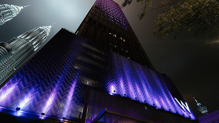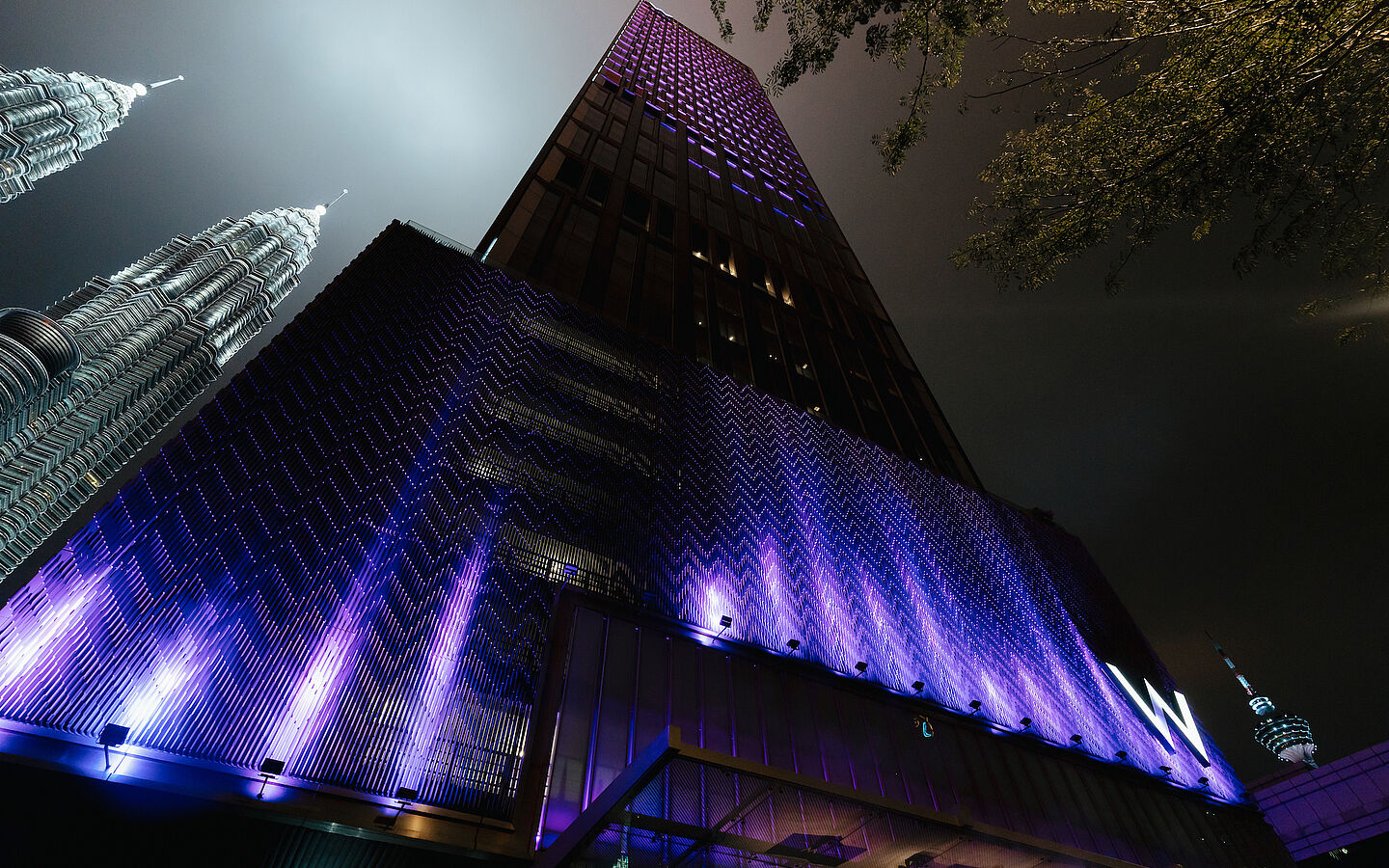Wer noch nie ein W erlebt hat, dürfte in der Lobby die Augen aufreißen. Eine moderne, knallig-bunte Wunderwelt wurde hier erschaffen, abgestimmt auf eine zumeist junge, asiatische Gästeschar. Auch wenn man nicht im Hotel wohnt: Ein Sunset Cocktail am „WET®“-Deck im 12. Stockwerk ist ein DJ-Sound-untermaltes Spektakel. Über dem riesigen, in Pink und Lila illuminierten Pooldeck steigt alle paar Minuten weißer Nebel auf. Zum Greifen nahe funkeln die Petrona Twin Towers, und bei klarem Himmel glitzern dazu sogar die Sterne.