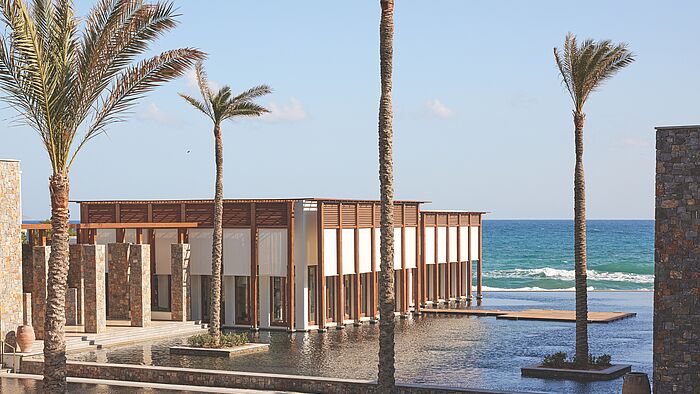 Wie ein minoischer Palast aus Licht und Wasser erhebt sich das Amirandes zwischen goldenen Sandstränden und einer atemberaubenden Lagune. Die Architektur spielt mit dem Meer: Sanfte Lagunen schlängeln sich durch die Anlage, reflektieren das Licht der kretischen Sonne und schaffen eine Atmosphäre von zeitloser Eleganz. Die neu gestalteten Suiten und Villen setzen neue Maßstäbe in Sachen Luxus – von eleganten Beachfront-Villen mit privaten Pools bis hin zu stilvollen Familienbungalows. Wer sich nach Exklusivität sehnt, wird hier fündig. Das kulinarische Angebot ist ebenso beeindruckend wie das Design. In sechs exquisiten Restaurants entfaltet sich eine Geschmackswelt, die von traditioneller kretischer Küche bis zu feinster asiatischer Fusion reicht. Besonders herausragend: das Minotaur Restaurant, in dem nicht nur mediterrane Spezialitäten serviert werden, sondern auch originale Keramiken von Pablo Picasso das Ambiente verzaubern. Das Elixir Alchemy Spa entführt Gäste in eine Welt der Erholung – mit holistischen Anwendungen, inspiriert von den
