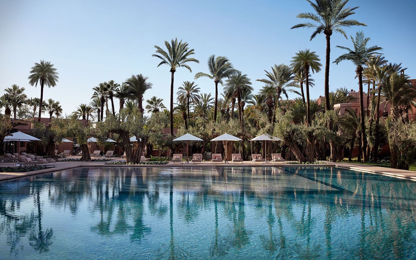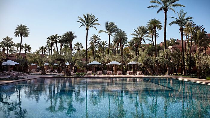 Das preisgekrönte Spa beeindruckt als edles Meisterwerk in Weiß und bietet auf 2.500 m2 eine Oase der Ruhe mit Hammams und traditionellen Heilmethoden.Für persönliche Wünsche sorgt zu jeder Zeit ein Butler, der mit Diskretion und marokkanischer Gastfreundschaft jeden Aufenthalt unvergesslich gestaltet. In vier Restaurants werden traditionelle Gerichte wie Tajine und Pastilla in Perfektion zubereitet. Ein herausragendes Highlight ist das La Grande Table Marocaine. Unter der Leitung von Hélène Darroze zelebriert es die kulinarische Vielfalt Marokkos. Ob ein blauer Hummer, der in einer traditionellen Tangia serviert wird, oder ein cremiges Schokoladendessert, das mit Kardamom verfeinert ist – jedes Gericht ist eine Reise durch die Geschmäcker des Königreichs.