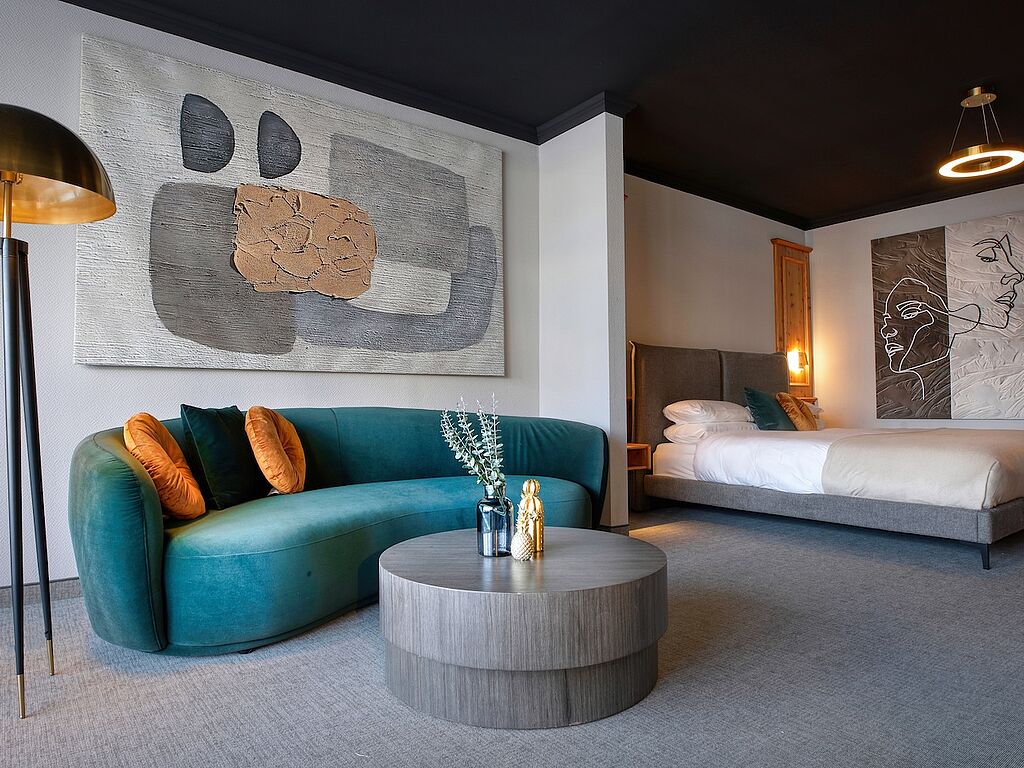 Das charmante Boutique-Hotel verfügt über 35 großzügig geschnittene Zimmer und Suiten, die den extravaganten Style des Hauses widerspiegeln. Dabei ist jede Unterkunft ein Unikat – moderne Designermöbeln teilen sich den Raum mit Handwerk aus Region und schaffen ein stilvolles Ambiente. Entspannung findet man in der kleinen Wellness-Oase mit Hallenbad, Dampfbad und finnischer Sauna. Auch ein Fitnessraum steht zur Verfügung.