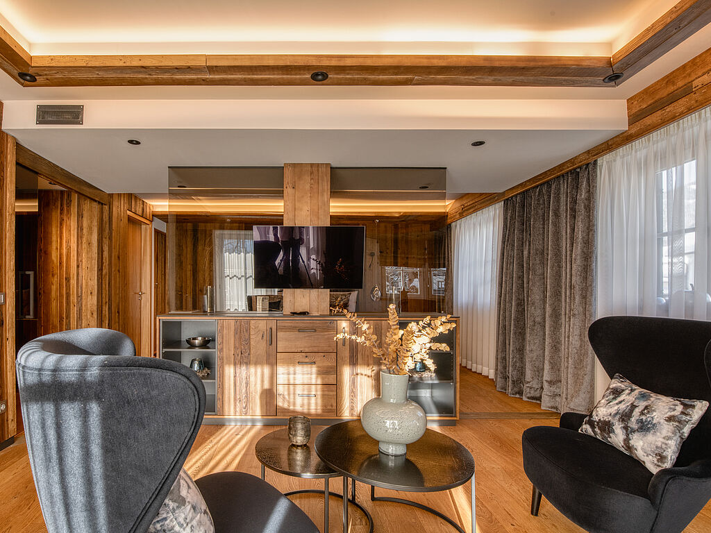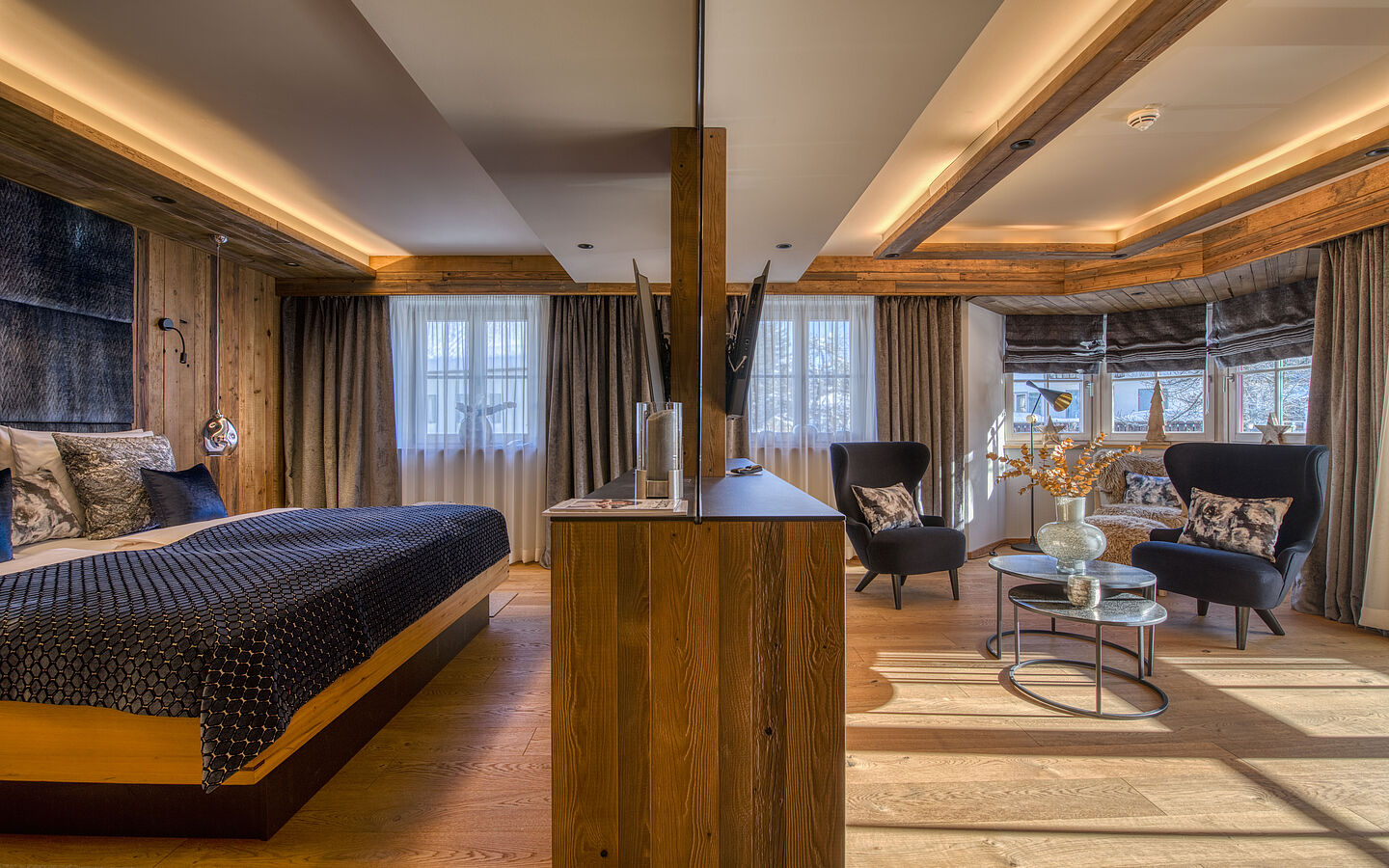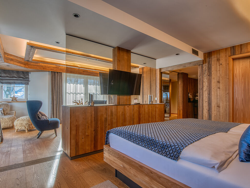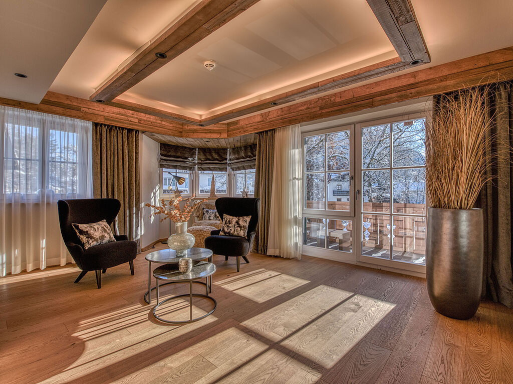 Schon beim Betreten des Hotel Maximilian wird spürbar, dass es sich um ein Haus mit außergewöhnlichem Charakter handelt. Nur 20 Zimmer und Suiten, jedes einzelne mit Bedacht gestaltet, schenken dem Gast ein stilvolles Zuhause auf Zeit. Die Verwendung natürlicher Materialien wie Holz, Stein und Leder, kombiniert mit modernem Design, schafft ein Ambiente, das zwischen alpiner Gemütlichkeit und urbanem Chic vermittelt. Alle Zimmer bieten Balkone mit Blick auf die imposanten Berge.