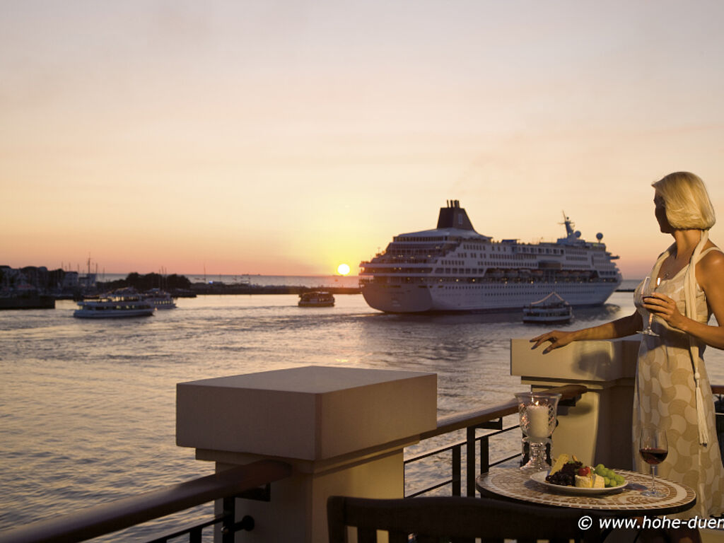 345 Zimmer – die im Haus jedoch „Skipper’s Cabins“ heißen – und 23 maritim-inspirierte Suiten zählt das Haus im Rostocker Stadtteil „Hohe Düne“, der übrigens erst nach der deutschen Wiedervereinigung für die zivile Nutzung freigegeben wurde. Heute ist er ein beliebtes Freizeit- und Erholungsgebiet mit Wohnpark, Strand, Hafenanlage – und der Yachthafenresidenz, die mit eigener Shopping-Mall sowie sieben Restaurants, mehreren Bars und eigener Kochschule fast schon eine eigene „Stadt im Stadtteil“ bildet. Begeisterte Hobbyskipper können ihr eigenes Boot während des Urlaubs im Hafen vor dem Hotel „parken“ – oder gleich über die Ostsee anreisen.
