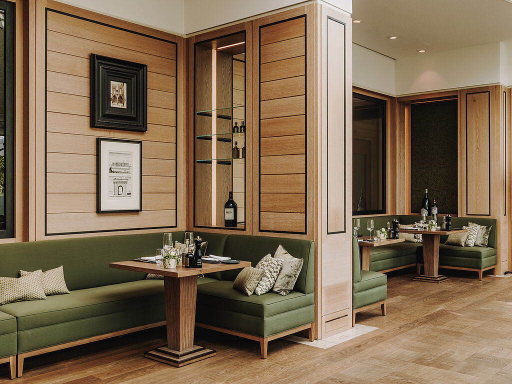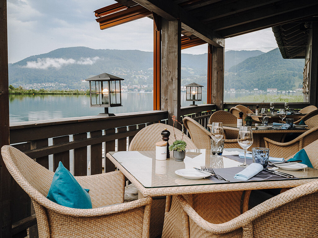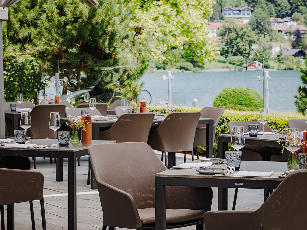 Erstklassig ist auch die Gastronomie: Das Restaurant Überfahrt startete im September 2024 neu durch unter der Leitung von Cornelia Fischer, zu dem Zeitpunkt amtierende „Köchin des Jahres“ im Schlemmer-Atlas, und steigte im Gault&Millau 2025 direkt mit drei roten Hauben einstieg. Das mit zwei schwarzen Hauben im Gault&Millau ausgezeichnete Restaurant Il Barcaiolo serviert traditionelle, raffiniert interpretierte Gerichte aus Norditalien. In der Egerner Bucht, mit einer schwarzen Haube und Blick auf die gleichnamige Bucht, verarbeitet Chef de Cuisine Walter Leufen die Schätze der Alpen zu klassischen Gerichten, nach dem Farm-to-table-Prinzip. Mit traditionell-bayerischer Küche verwöhnt die Bayernstube. Dazu kommt die Fährhütte 14 in Bestlage am Seeufer mit feiner Küche, ebenfalls mit einer schwarzen Haube gekürt, in einem Ambiente zwischen Bootshaus- und Beach-Lounge-Atmosphäre.