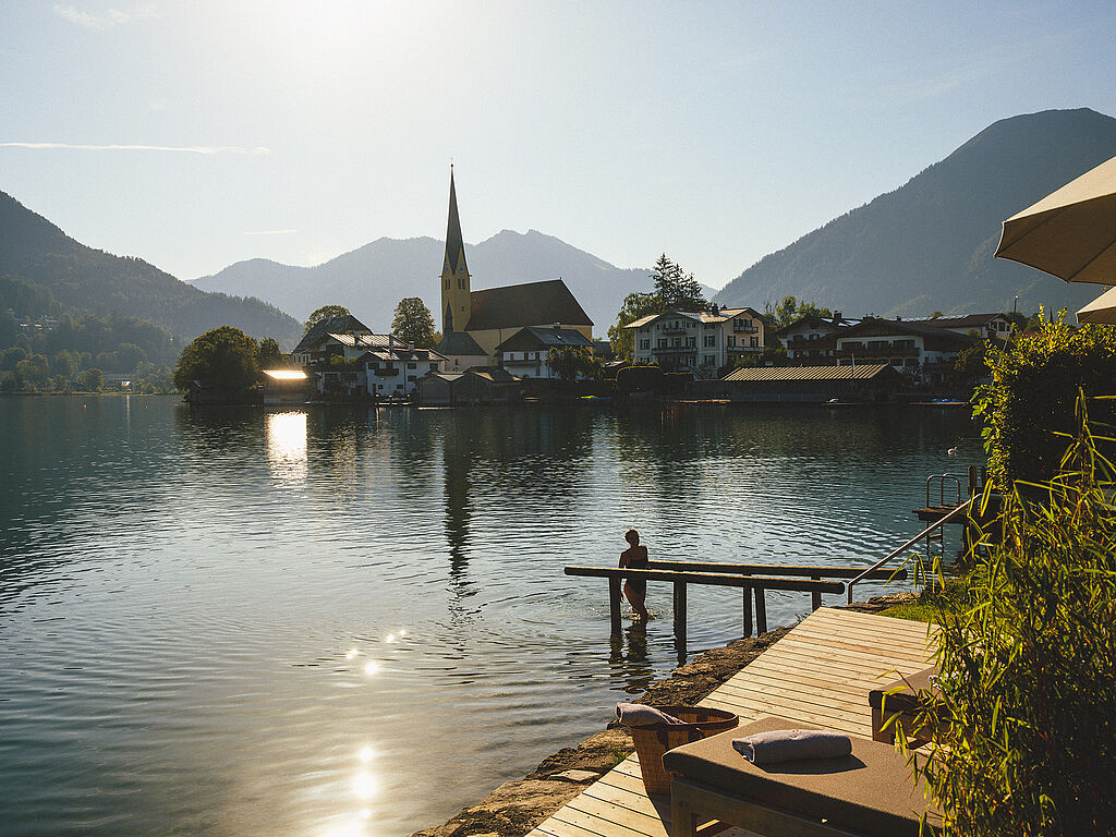 Exklusives Resort mit ausgezeichneter Kulinarik am Ufer des Tegernsees: Althoff Seehotel Überfahrt, Rottach-Egern. Ein Hotel wie aus dem Bilderbuch: Das Althoff Seehotel Überfahrt befindet sich in bester Lage direkt am berühmten Tegernsee, umgeben von malerischer Alpenlandschaft.