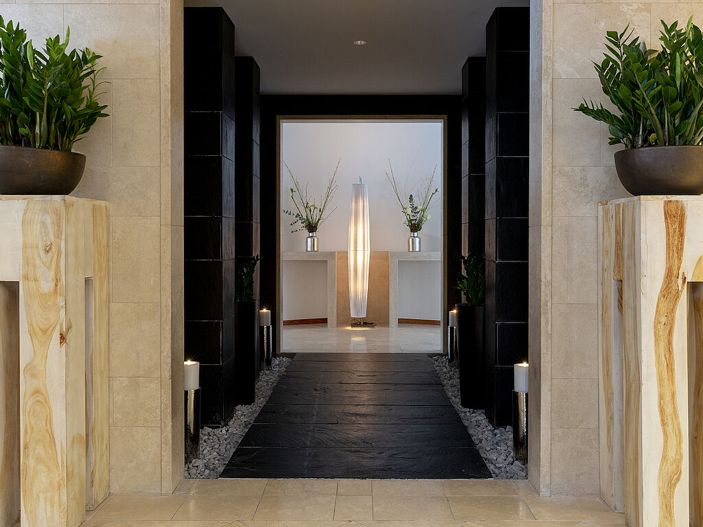 Die luxuriösen Zimmer und Suiten verteilen sich über zwei Hauptgebäude: das historische „Englische Schloss“, das vor über 100 Jahren von der englischen Adeligen Mary Isabel Portman erbaut wurde, und den modernen Gartenflügel aus Holz und Glas. Die unaufdringliche Farbgestaltung in hellen und pastelligen Naturtönen beruhigt die Sinne, während Holz-, Rattan- und Polstermöbel dem Ambiente einen natürlichen und dennoch eleganten Touch verleihen.