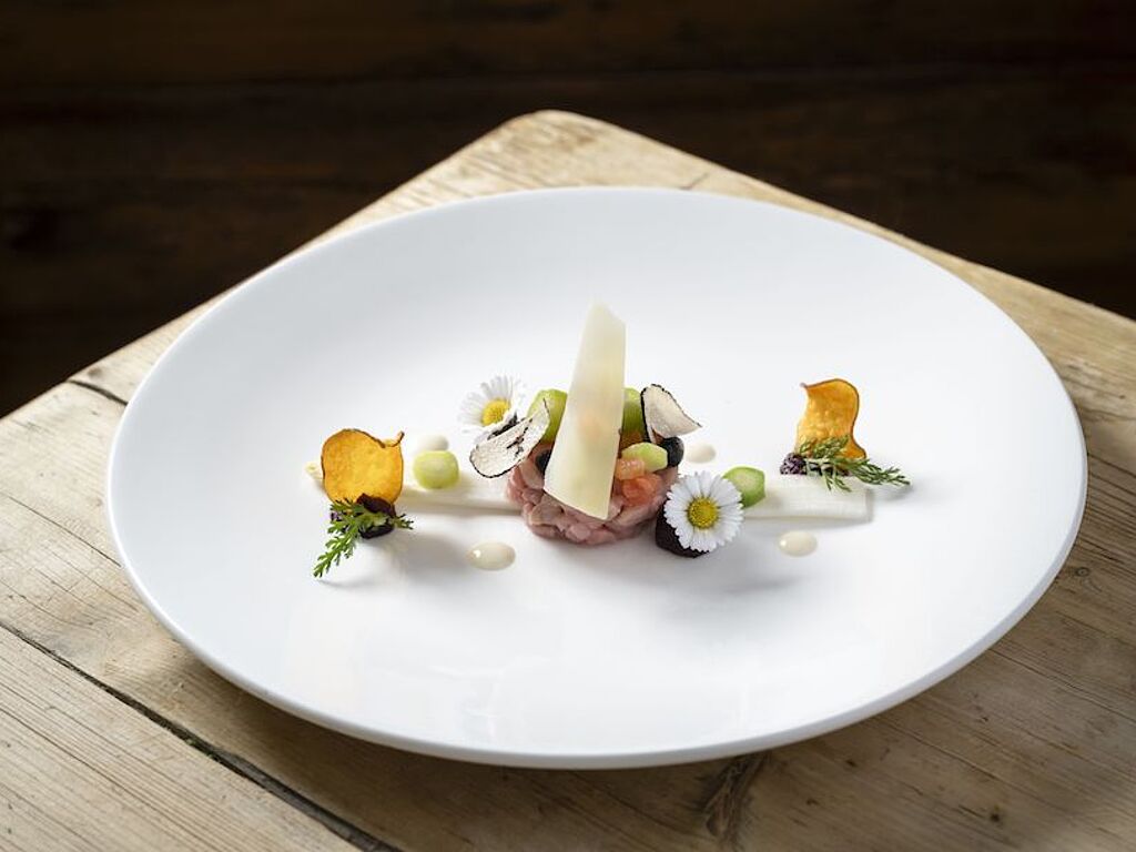 Die Gastgeber Christa, Karl und Marc Traubel führen gemeinsam mit Küchenchef Kristian Knölke ihr nachhaltiges Konzept auch in der Esskultur fort und vereinen Allgäuer Tradition mit modernen Kochrichtungen aus aller Welt. Und das seit Anfang des Jahres 2022 mit noch mehr Fokus auf Herkunft und Qualität, da das Hotel seitdem Bioland-Partner mit Bronze-Auszeichnung ist. Somit stammen fast 60 Prozent der Zutaten für Speisen, die Küchenchef Kristian Knölke verarbeitet, aus regionalem, biologischem Anbau. Mit diesem Schritt unterstreicht das HUBERUTS, das seit jeher auf Produkte aus der Heimat setzt, seinen nachhaltigen kulinarischen Kurs des Holistic Food. Ganz im Sinne der italienischen Slow Food®-Bewegung beinhaltet dies neben abwechslungsreichen, gesunden Gerichten und einer schonenden Zubereitung ohne Zusatzstoffe vor allem saisonale Produkte aus der Region. So liefert zum Beispiel die Bergfischzucht Gunzesried fangfrische Bergsaiblinge, der prämierte zwölfmonatige Bergkäse kommt von der Alpe Spicherhalde und Bio-Milch und -Fleisch stammen vom nur zweieinhalb Kilometer entfernten Theresienhof, dem ersten bio-zertifizierten landwirtschaftlichen Betrieb in Balderschwang