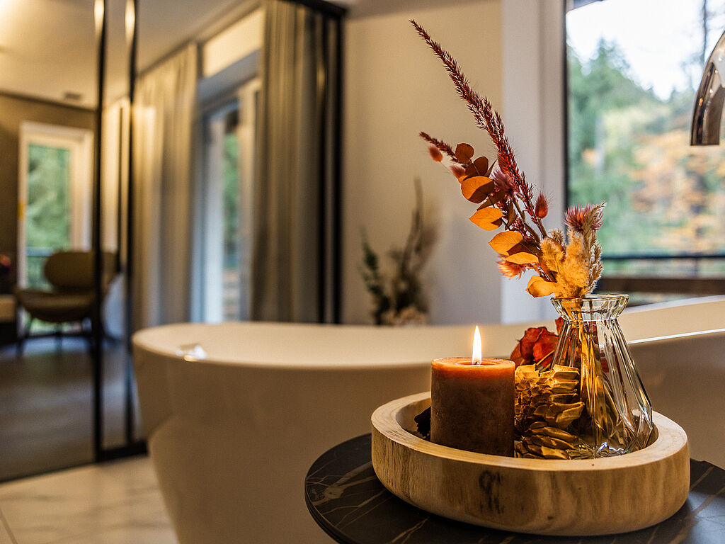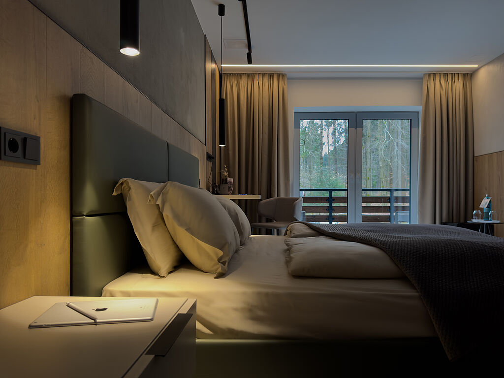 Das Hotel selbst ist ein Erlebnis: Klare Linien, warme Materialien und lichtdurchflutete Räume spiegeln die Ruhe der Landschaft wider. Die großzügigen Suiten – teils mit freistehender Badewanne und Waldblick – laden ein, sich zurückzuziehen und aufzutanken. Ein besonderes Highlight wird zum Jahresende 2026 das neue, in die Erde eingebettete SPA-Gebäude – architektonisch anspruchsvoll, funktional und atmosphärisch zugleich.