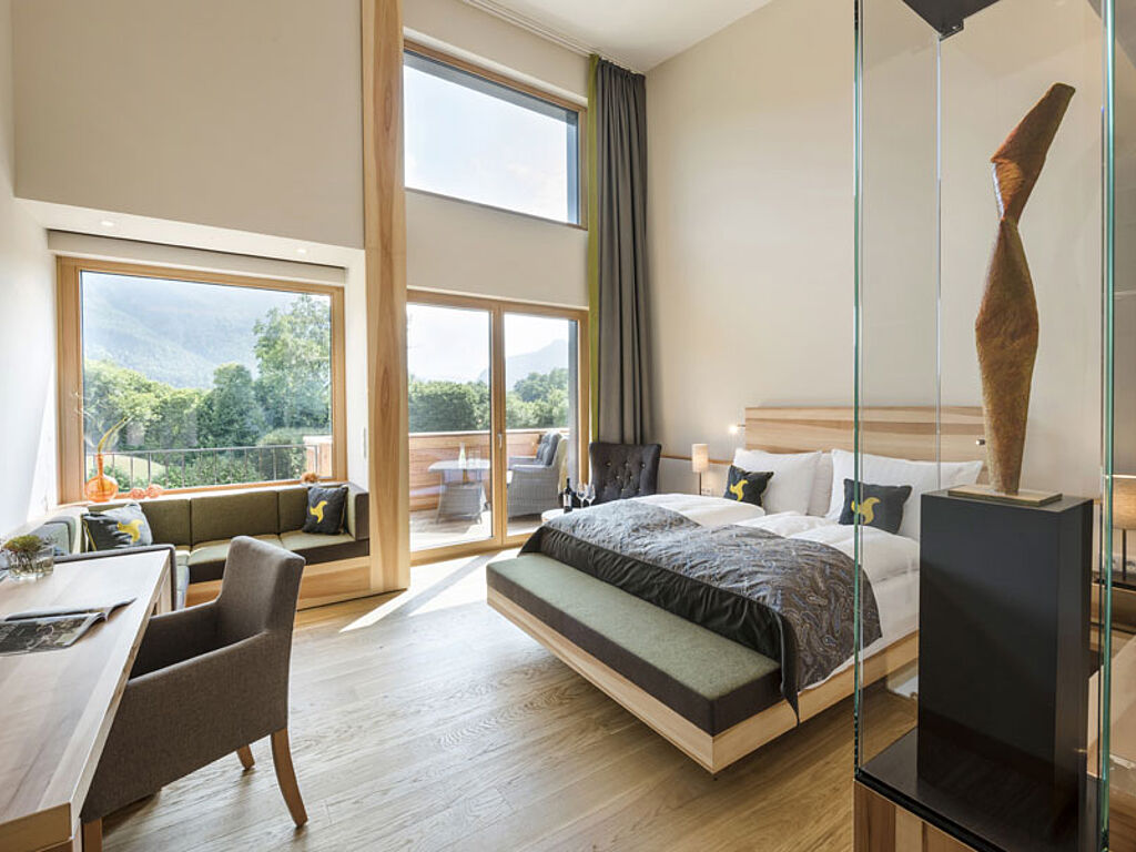 Der Duft von edlem Vollholz, das komfortable Gefühl von erlesenen Stoffen und der freie Blick auf eine Bergwelt in unberührter Natur – im Klosterhof – Alpine Hideaway & Spa können sich die Gäste auf wahrgewordene Wohnträume in Form von 65 Panoramazimmern und Suiten freuen. In den Naturzimmern herrschen natürliche Materialien vor, die von regionalen Partnern hergestellt wurden. In den Panorama-zimmern schweift der Blick – sei es vom Bett oder der Badewanne aus – durch die außergewöhnlich großen Fensterfronten in die Berge. Das Apfel-Vollholz-Mobiliar, der Naturholzboden und die gemütliche Sitz- und Leseecke tun ihr Übriges, um die Alltagssorgen zu vertreiben. Während die Panorama Lofts im Dachgeschoss mit einer Raumhöhe von fünf Metern Freiheit pur vermitteln, sind die weitläufigen Panorama-Suiten mit Panorama-Balkon ein Füllhorn an unvergesslichen Momenten. Zum Träumen verführen die einzigartigen Spa Lofts mit privatem Whirlpool und eigener Infrarot-Sauna auf zwei Etagen.