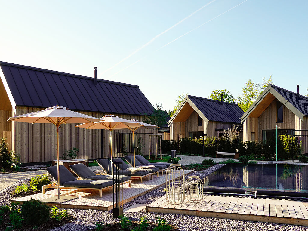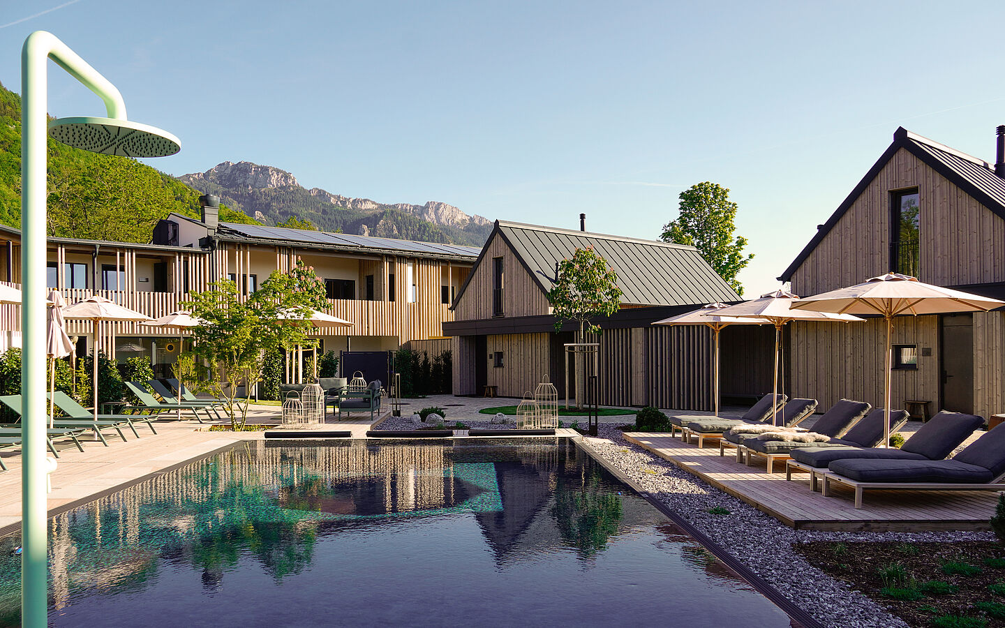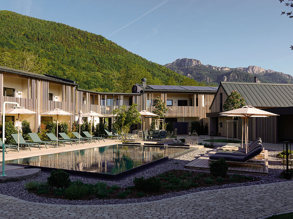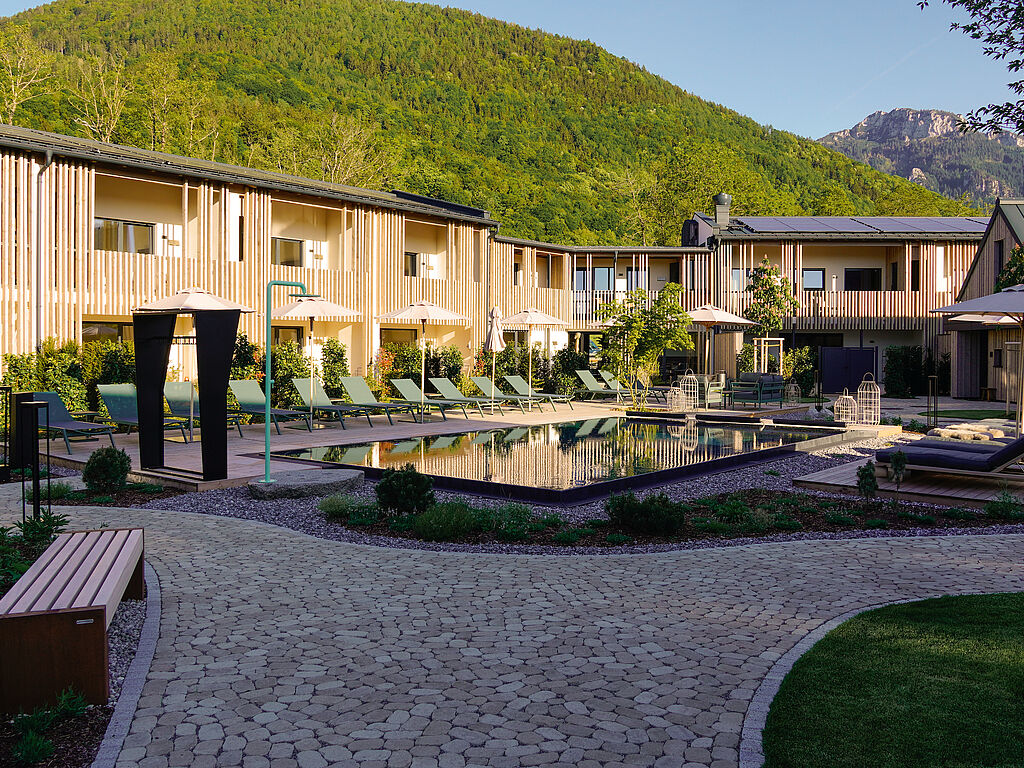 Die Agrad Chalets in Aschau im Chiemgau verkörpern eine Architektur, die sich nahtlos in die umliegende Natur einfügt. Entstanden auf einem sanft revitalisierten Gelände, wurde das Chaletdorf von der Familie Heinrichsberger in Zusammenarbeit mit dem Architekturbüro brüderl konzipiert. Die zwölf Chalets und fünfzehn Suiten sind so angeordnet, dass sie die Topografie des Geländes respektieren und einen harmonischen Blick auf die umliegenden Berge und das Schloss Hohenaschau bieten. Die Verwendung von natürlichen Materialien wie Holz, Naturstein und Metall unterstreicht die Verbindung zur Region und schafft eine Atmosphäre der Ruhe und Geborgenheit.