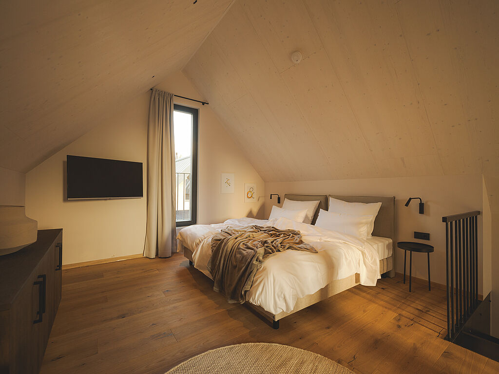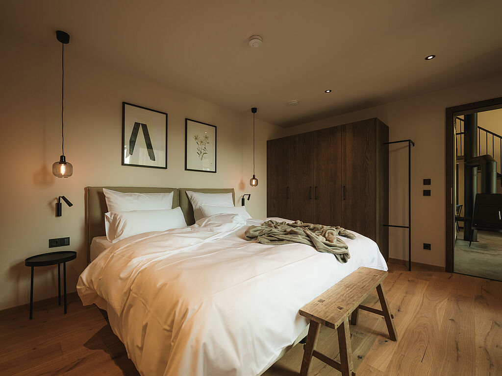 Jedes der Chalets bietet etwa 75 Quadratmeter Wohnfläche und ist für bis zu vier Personen ausgelegt. Mit zwei Schlafzimmern, einem Wohnbereich mit Kamin sowie einem privaten Spa inklusive Sauna und Hot Tub bieten sie höchsten Komfort. Die Suiten, zwischen 37 und 60 Quadratmeter groß, sind in drei Kategorien unterteilt und vereinen ästhetische Klarheit mit funktionaler Effizienz. Die Innenräume zeichnen sich durch hochwertige Materialien, handwerkliche Präzision und ein durchdachtes Farbkonzept aus, das natürliche Töne und harmonische Übergänge betont.