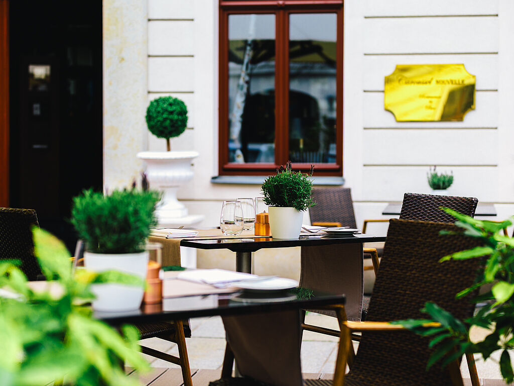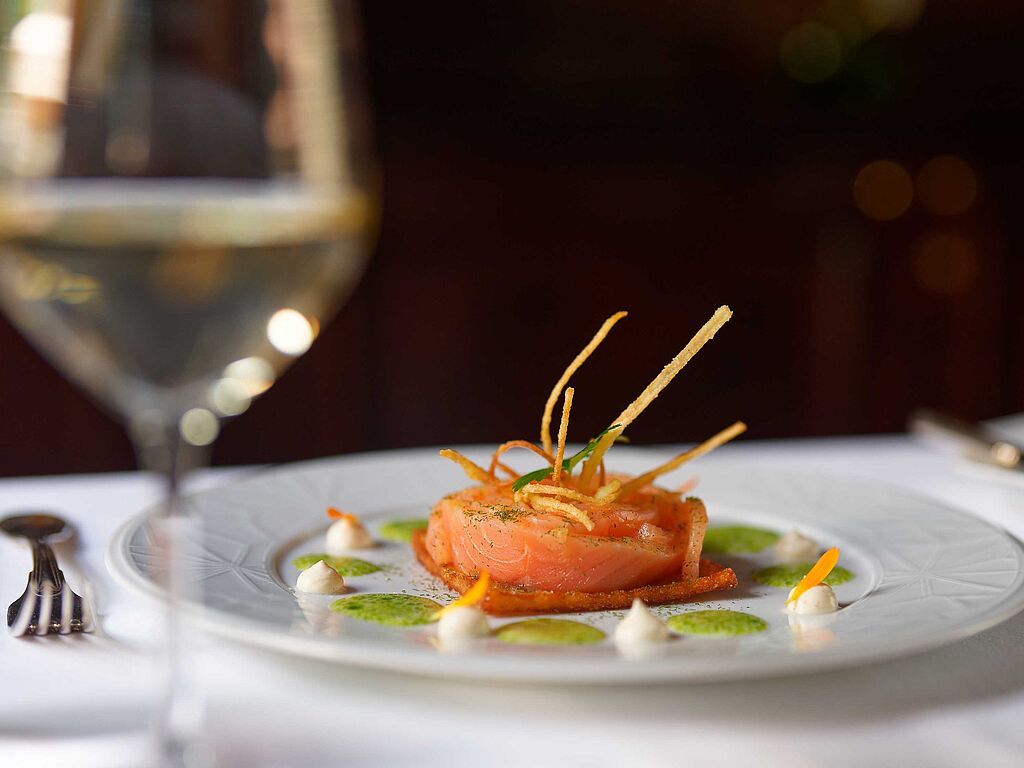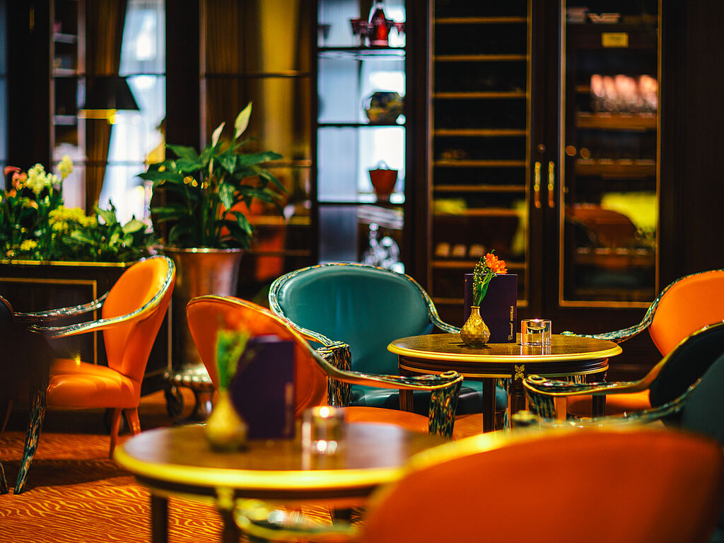 Den Gästen stehen 30 Sitzplätze zur Verfügung. In den Sommermonaten bietet zudem die Sonnenterrasse 20 Plätze. Die Palais Bar und die Cigar Lounge runden das gastronomische Angebot ab und bieten die perfekte Möglichkeit, den Abend ausklingen zu lassen.