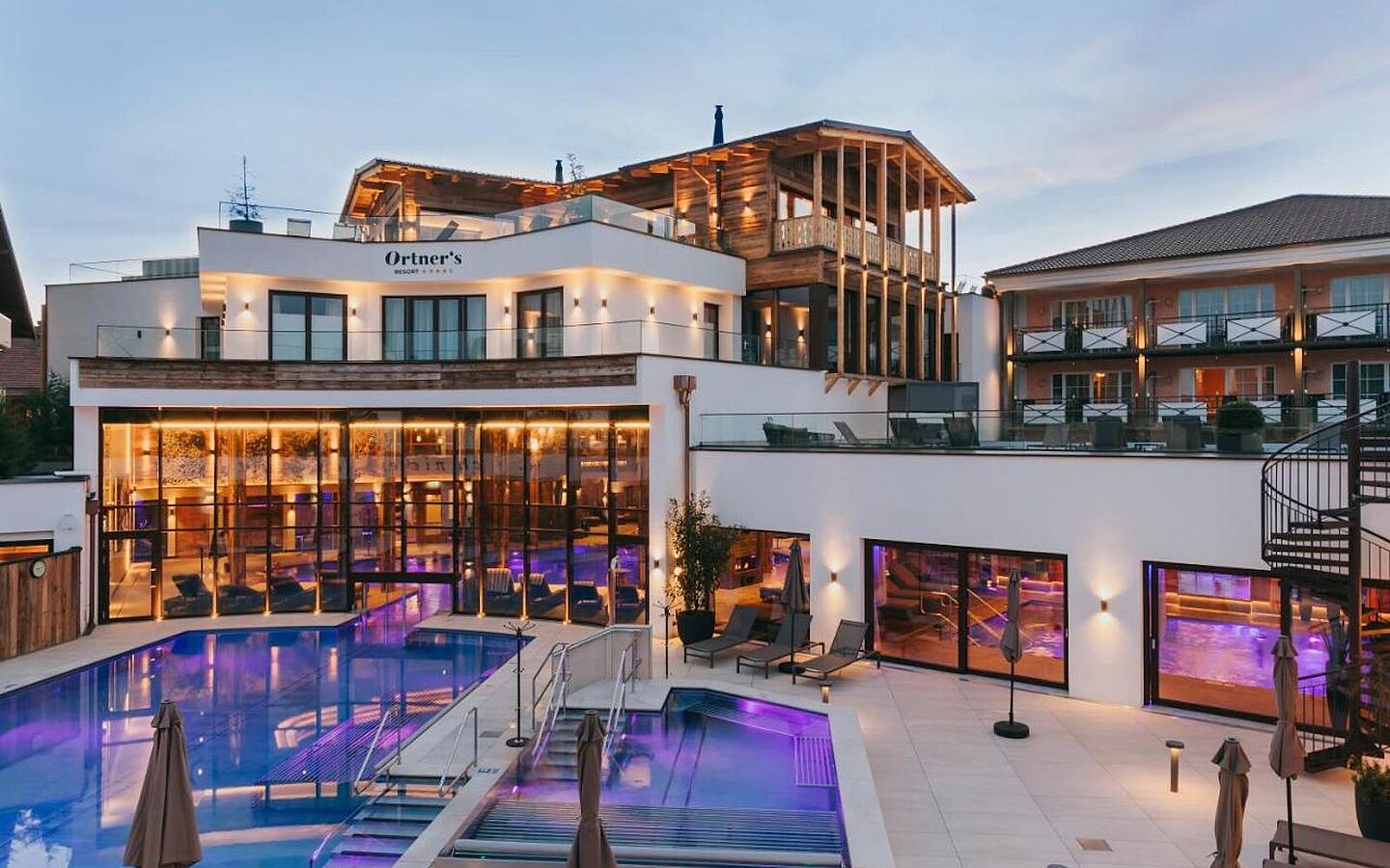 Darüberhinaus lässt es sich im Saunabereich mit Kneipwandelgang, Textilsauna, Eventsauna, Zirbelsauna, Dampfbad, Infrarotkabinen, Salzgrotte herrlich tiefenentspannen. Heilsame Ruhe findet man im Bereich auf der Galerie im Event-Hallenbad, in den Kuschelnestern, im Wandelgang mit Liegebereich, auf zwei Sonnendecks und den Liegeplattformen am Biotop. Klassische und exotische Wellnessmassagen und exzellente Pflegetreatments komplettieren das edle Wellnessprogramm im Ortner´s Resort.