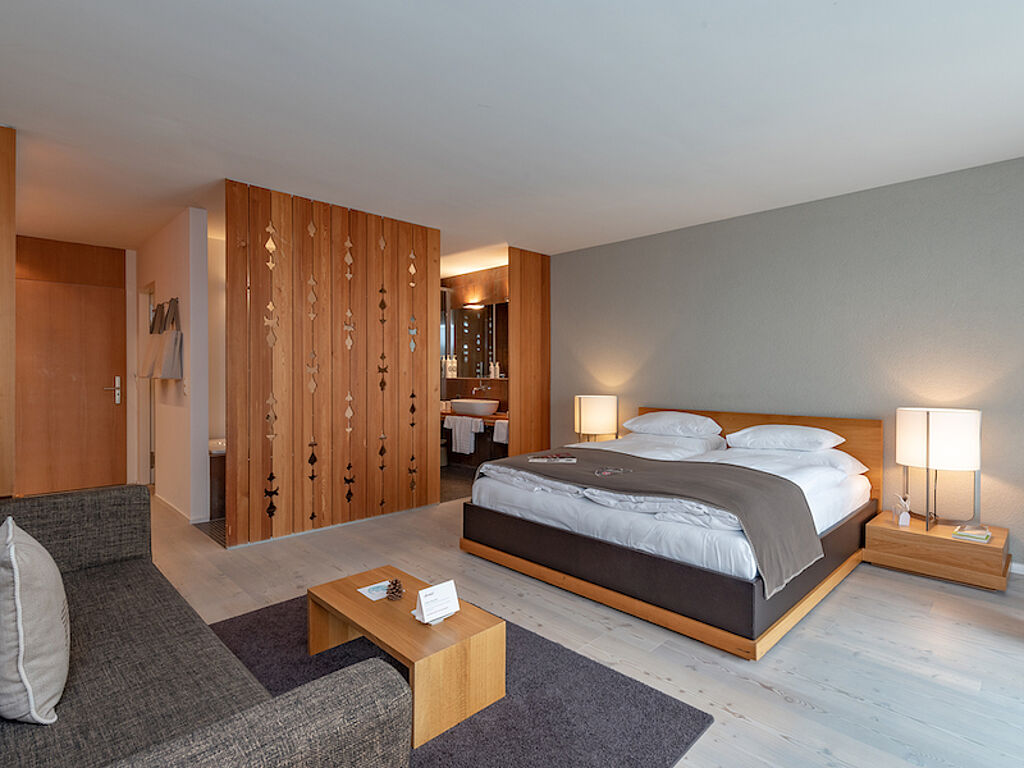 Zwischen dem Alpenchic und Nostalchic – der Fokus liegt definitiv auf schick – der Zimmer ist man von hübsch verarbeitetem Holz umgeben. Für die großzügigen Alpenchic-Zimmer des Schweizerhof Lenzerheide hat sich das Designerpaar Tanja Joerimann und Werner Woodtli von der Natur inspirieren lassen, weswegen etwa eine lichtdurchlässige Lärchenwand Bad- und Wohnbereich trennt. Die stilvoll renovierten Nostalchic-Zimmer in einem architektonisch außergewöhnlichen Haus der Jahrhundertwende sind eine charmante Symbiose zwischen Tradition und Moderne. Neben der 60 m2 großen Alpenchic-Juniorsuite, die sich dank der Verbindungstüre auf 100 m2 vergrößern lässt, ist die Alpenchic-Suite ein absolutes Highlight des Hauses: Insgesamt 80 m2 groß, verfügt sie über eine Galerie für zwei Kinder und lässt sich mit der Verbindungstür auf beeindruckende 120 m2 erweitern. 2021 wurden Lobby und Réception komplett saniert – Elegance und Zeitlosigkeit erwarten nun in modernster Atmosphäre.