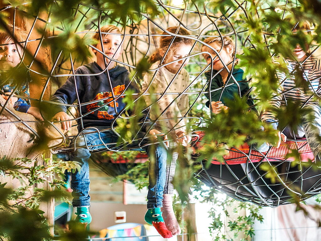 Rund um die Uhr stehen den Kids ein Hallenbad mit Kletterparcours und eine Rutschbahn vom ersten Stock an die Kinderrezeption zur Verfügung (Rezeption 8-22h / Rutschbahn 9-21h). Austoben können sich die jungen Gäste auf der hauseigenen Hüpfburg, am großen Spielplatz oder im riesengroßen und nagelneuen Märlibaum, der in Zusammenarbeit mit dem Vergnügungspark Europapark Rust entstand. Auf der Golden-Geiss-Brücke, wo man Ziegen, Hasen und Meerschweinchen hautnah erleben und streicheln kann, werden täglich Tier-Fütterungen mit den Mitarbeitern angeboten. Wasserratten begeistern das Erlebnishallenbad mit 34 Grad warmem Infinity-Außenpool, der Innenpool, die 20 Meter lange Wasserrutschbahn-und Kinderbecken.