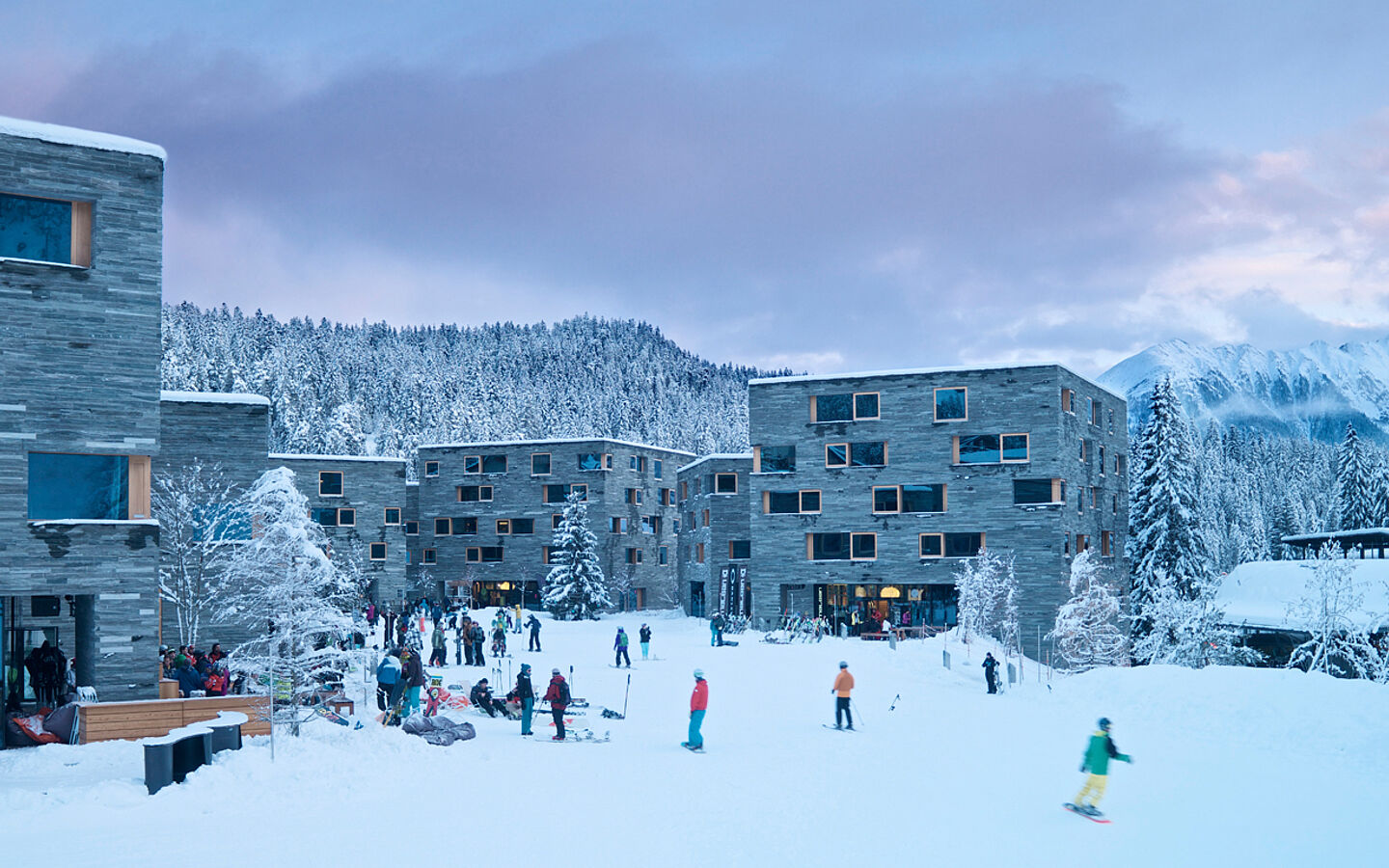 Rock and Toll: Der Flimser Bergsturz stand Pate für das außergewöhnliche kubische Designhotel aus regionalem Material. Kein Wunder, dass die preisgekrönte Herberge bei großen und kleinen Gästen einen Stein im Brett hat.