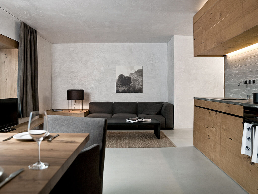 Die Wohnräume sind von klaren Formen und edlen, natürlichen Materialien geprägt. Eichenholz oder Textilien in Naturtönen setzen Akzente und schaffen eine warme, einladende Atmosphäre. Das Mini-Spa im Badezimmer wartet mit Dampfbad und einer Regenwalddusche auf. Eine voll ausgestattete Küche rundet das Interieur ab. Kleine Gruppen beherbergt das 55 m² große 4-Bett-Appartement mit zwei Schlafzimmern und maximal fünf Betten. Mittlere Gruppen finden auf den 89 m² des 6-Bett-Appartments mit drei Schlafzimmern, maximal sechs Betten und zwei separaten Badezimmern Platz. Für größere Gruppen ist das 8-Bett-Appartement ideal, das auf 120 m² vier Schlafzimmer mit maximal zehn Betten und zwei Badezimmer bietet. Mit dem komfortablen, 26 m² großen Doppelzimmer hat das mehrfach ausgezeichnete rocksresort auch für romantische Pärchen-Urlaube das passende Angebot im Programm.