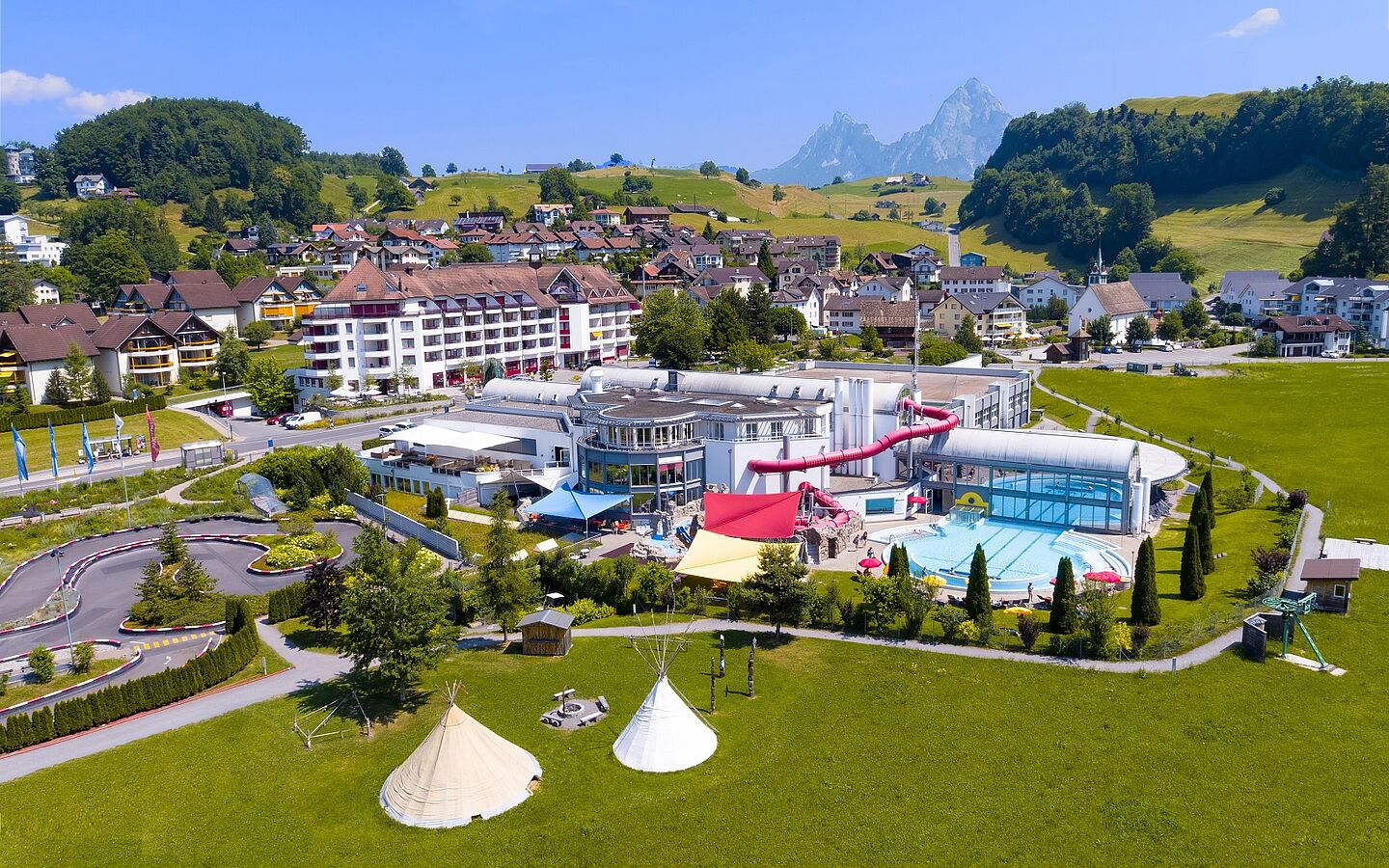 Die einzigartige Auswahl an Freizeit-Programmen und Outdoor- wie Indoor-Attraktionen des Swiss Holiday Parks machen das Hotel zum Ferien-Paradies schlechthin für Groß und Klein. Sportbegeisterte freuen sich drinnen auf Badminton, Squash, Bowling (inkl. Kinderbowling), Indoor-Klettern, Billard, Tischtennis oder auf ein Workout im großen, hauseigenen Fitnesscenter. Und draußen gibt es weitere spannende Attraktionen wie Elektro-Kartbahn, Flying Fox-Parcours, Tennis und Minigolf. Die Bäderlandschaft besteht aus einem großen Erlebnisbad und mit Innen- und Außenpool, Wildwasserkanal, Whirlpool, Dampfbädern, Römisch-Irischen Thermen und Saunalandschaft. Dort angegliedert ist auch ein riesiger Day Spa, wo man sich bei Massagen, Wellnessbehandlungen oder Beauty-Treatments verwöhnen lassen kann. Zum Resort gehört auch der wunderschöne Erlebnishof Fronalp, der neben Ponyreiten viel Spannendes rund um das Thema Bauernhof bietet und ein Paradies für Kinder ist.