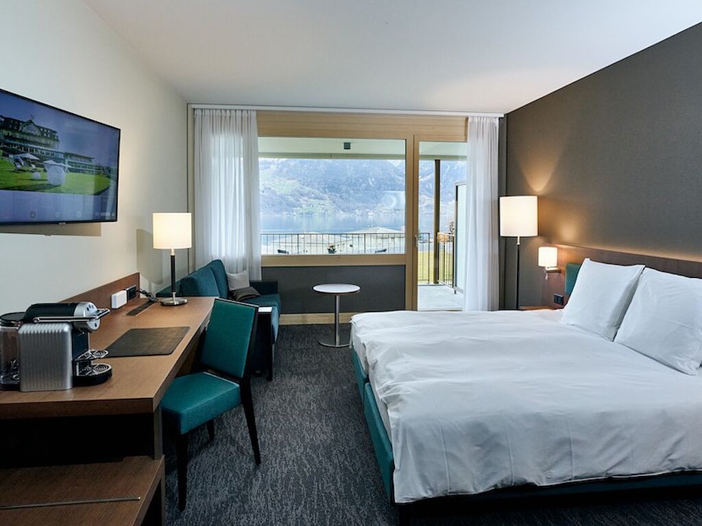 Zum Träumen im wahrsten Sinne des Wortes laden die nun 56 Zimmer und Suiten des Hauses ein. Spezielle FlowSleeping Betten, die durch individuell regulierte Zonungen höchsten Schlafkomfort garantieren, sorgen für maximale Erholung während der Nacht. Und kuscheln darf man hier in Bett- und Frotteewäsche aus ausschließlich natürlichen Phasern. Da muss man schon aufpassen, dass man das Frühstück nicht verschläft – denn das ist bereits im Zimmerpreis inkludiert und das Aufstehen in jeden Fall wert! Das feine Buffet mit Spezialitäten aus dem Berner Oberland gestaltet sich als perfekter Start in den Tag.